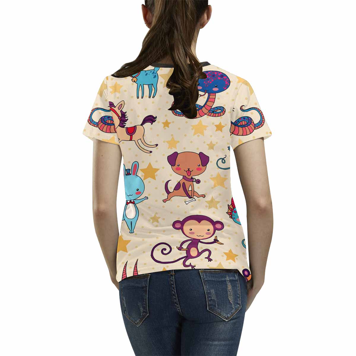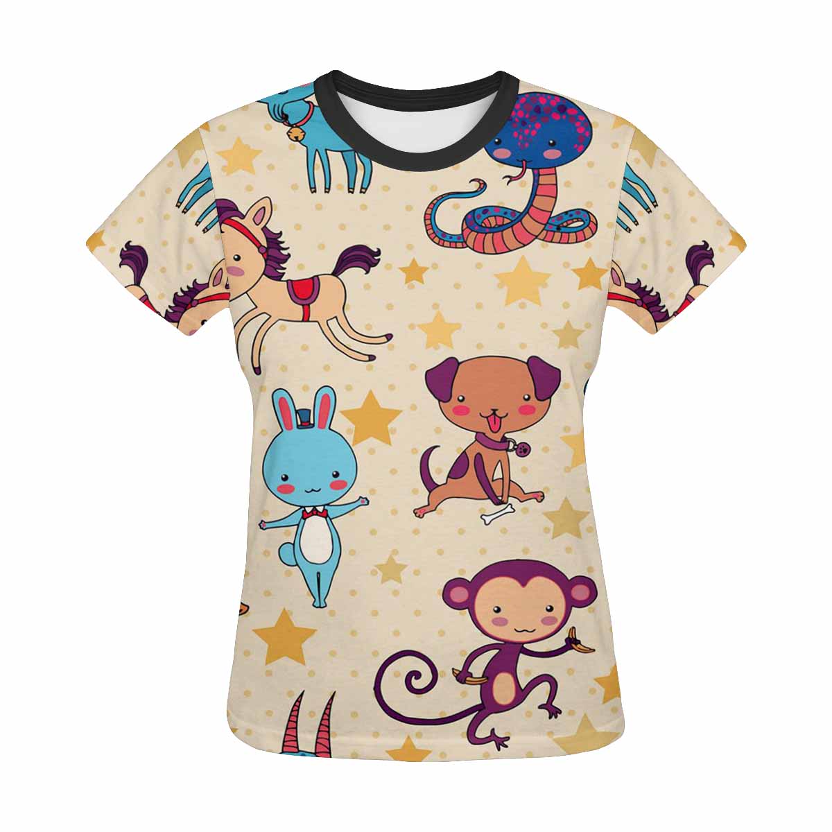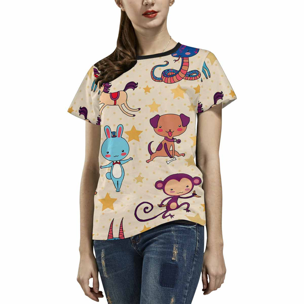 Womens tops t-shirts print with Chinese zodiac animals pattern