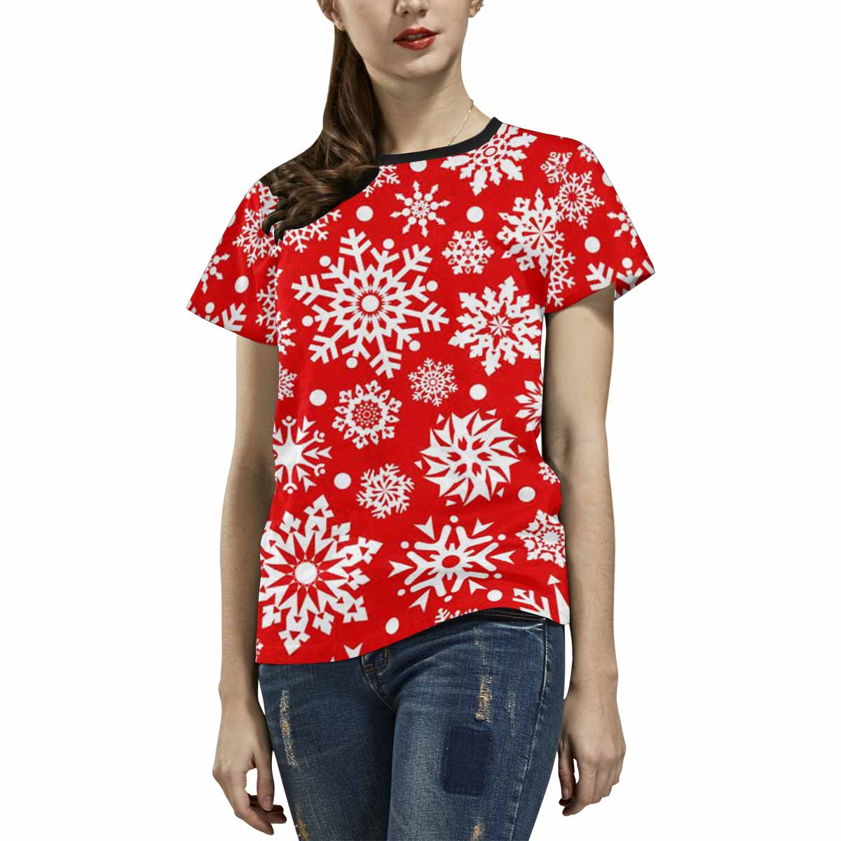 Womens tops t-shirts print with christmas snowflake