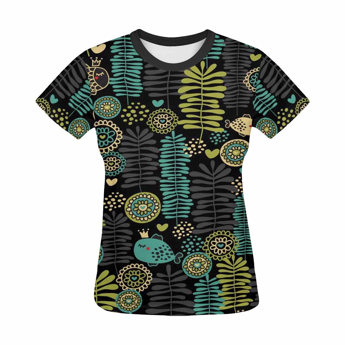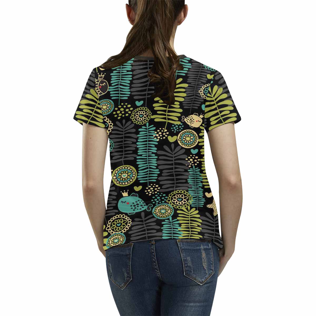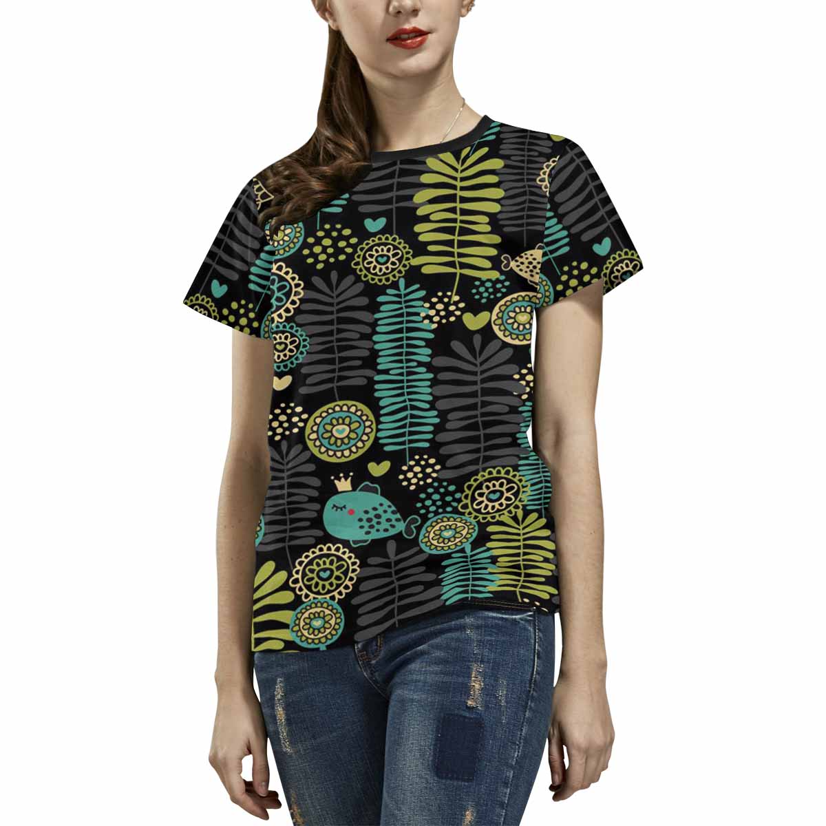 - 10.23 Oz. Polyester fabric. Dye-sublimation printing, Personalized all-over print T-shirt for women.