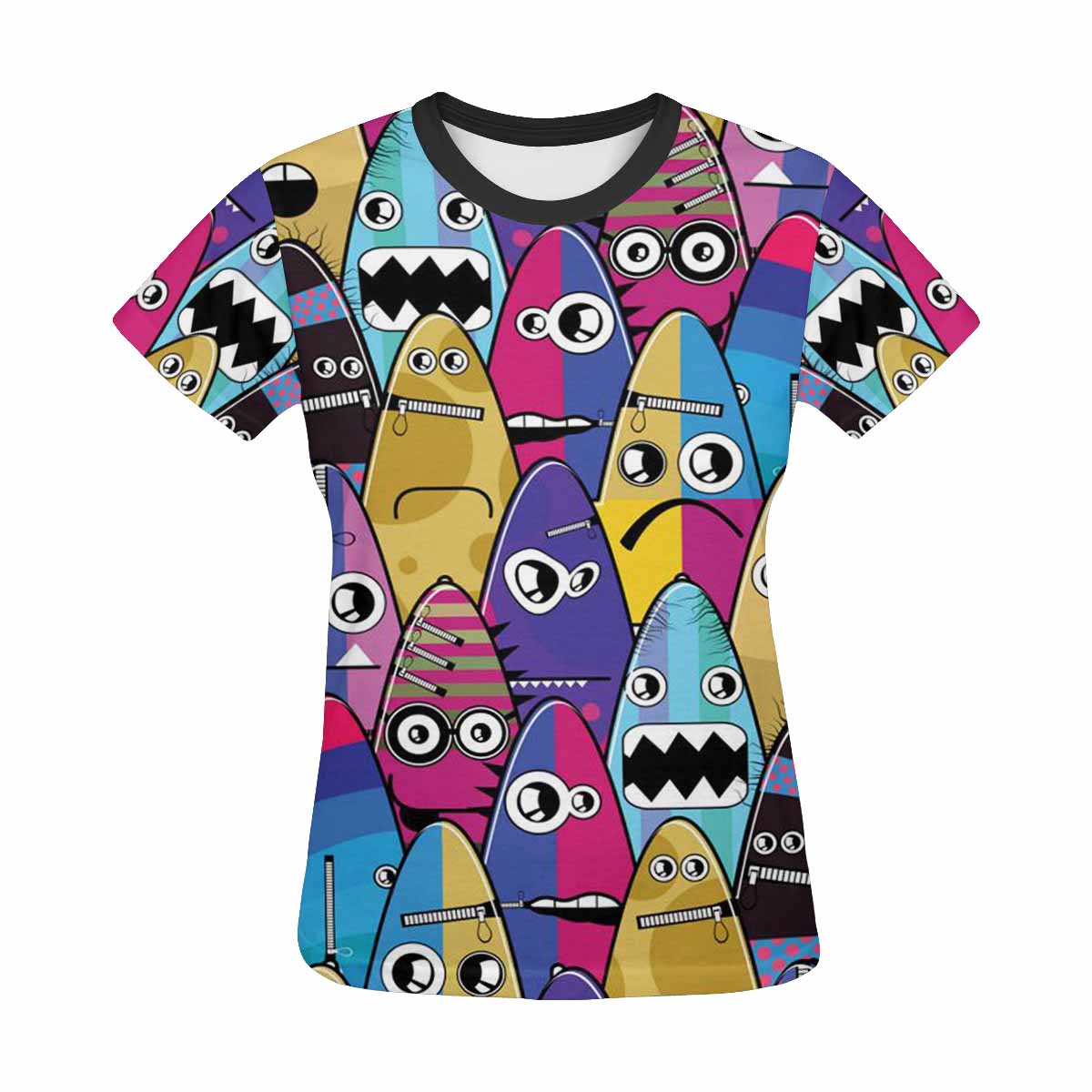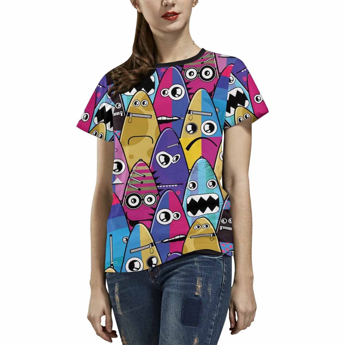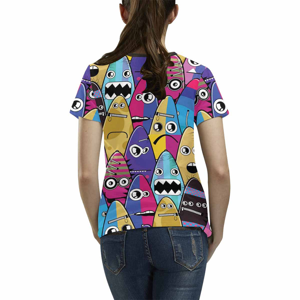 Womens tops t-shirts print with crazy colorful Monsters