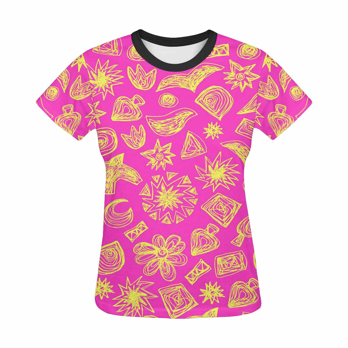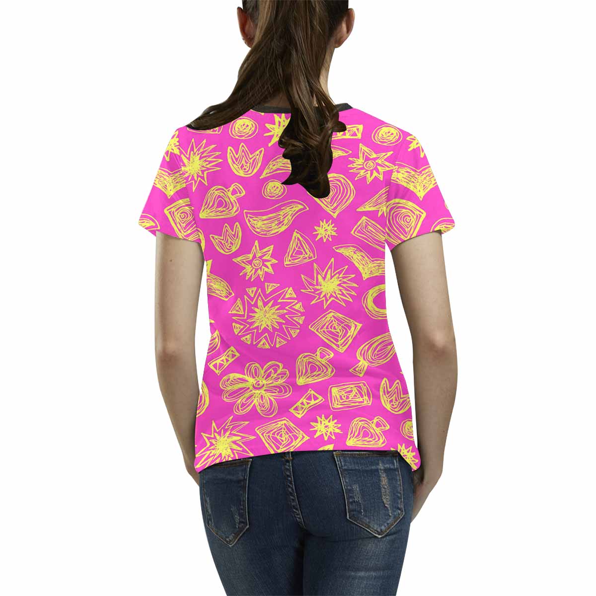 • 10.23 Oz. Polyester fabric. Dye-sublimation printing, Personalized all-over print T-shirt for women.