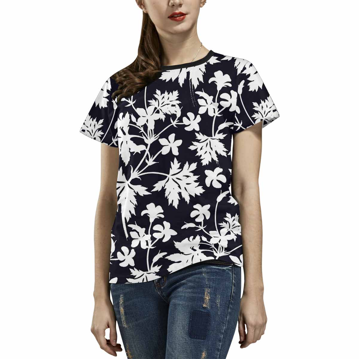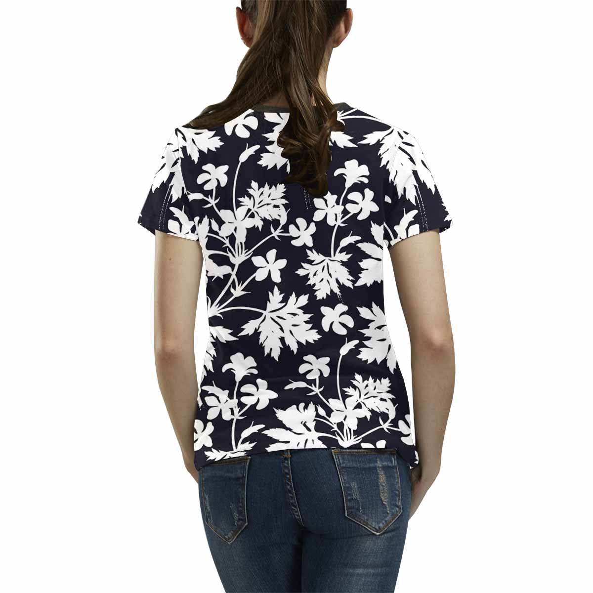 • 10.23 Oz. Polyester fabric. Dye-sublimation printing, Personalized all-over print T-shirt for women.
