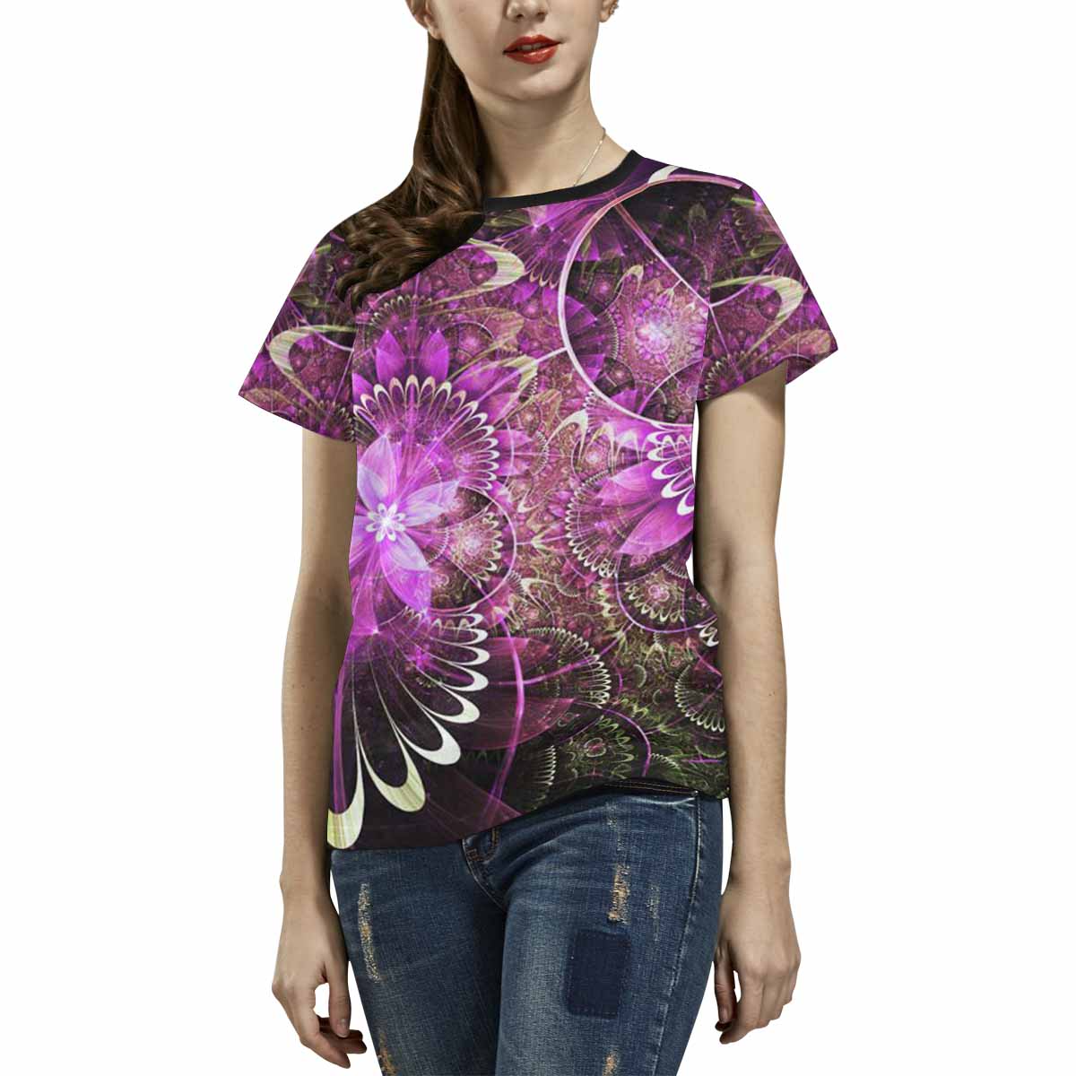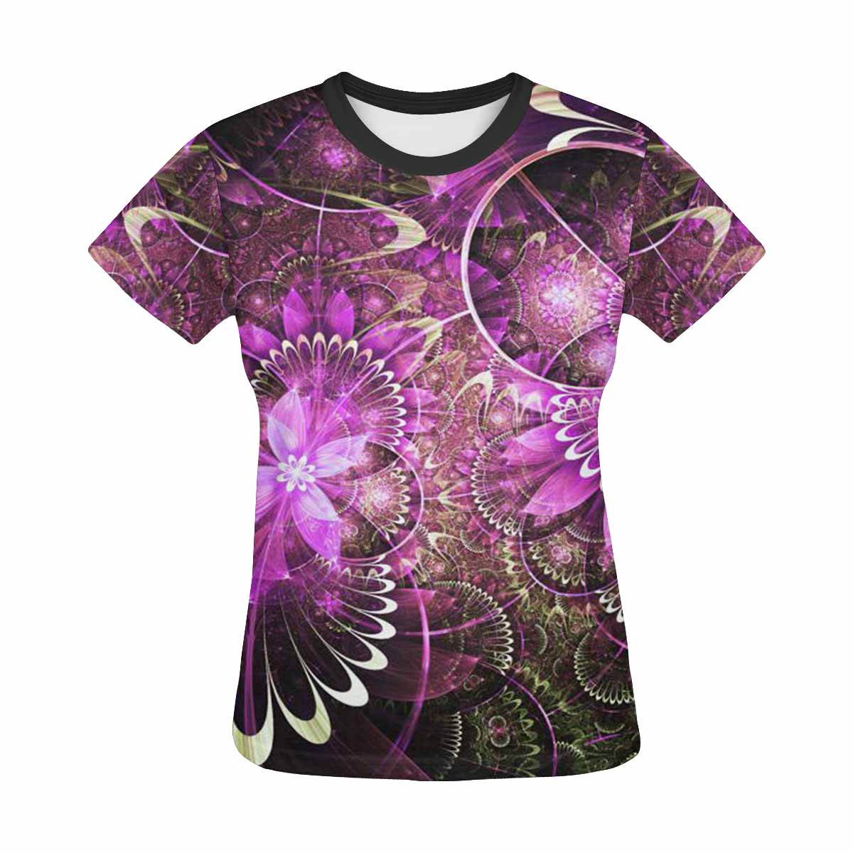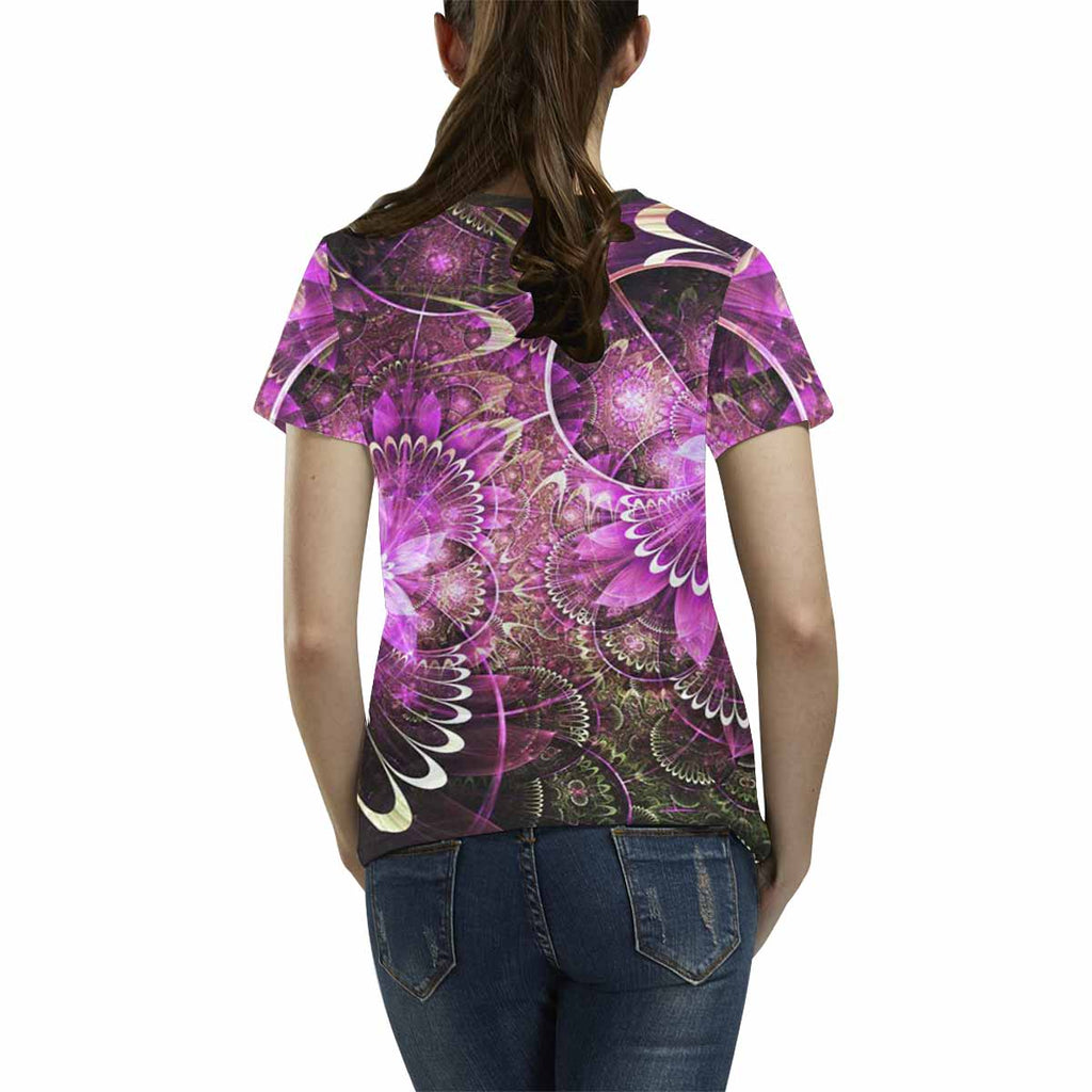 Womens tops t-shirts print with Glossy purple fractal flowers