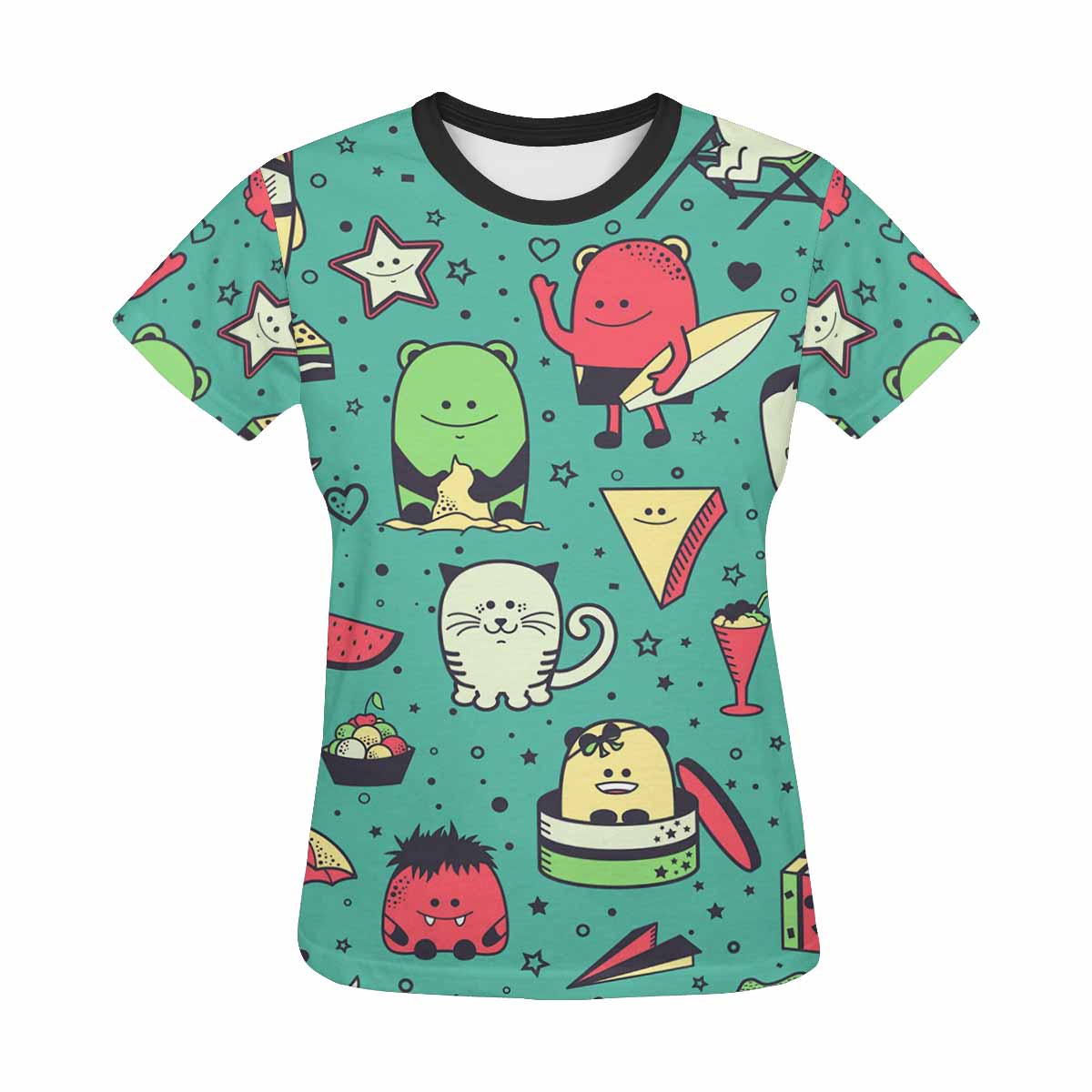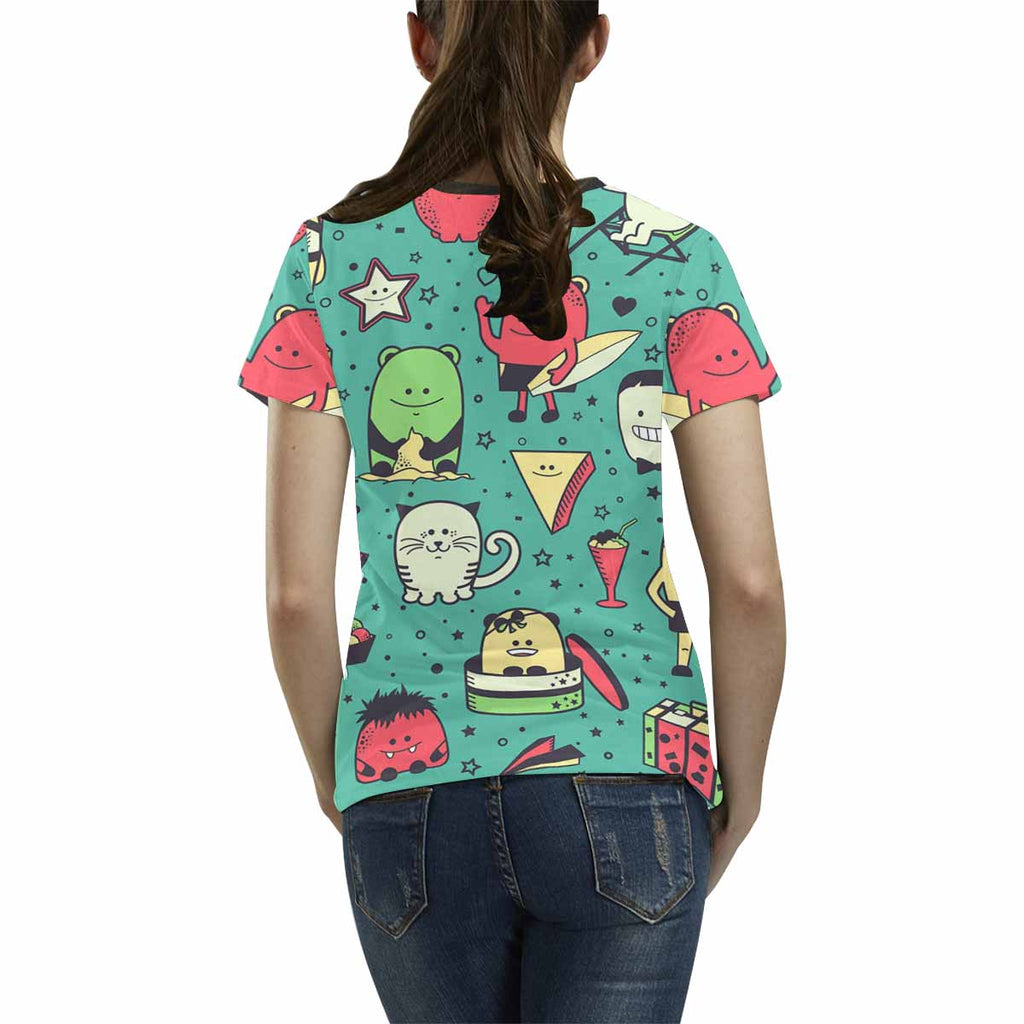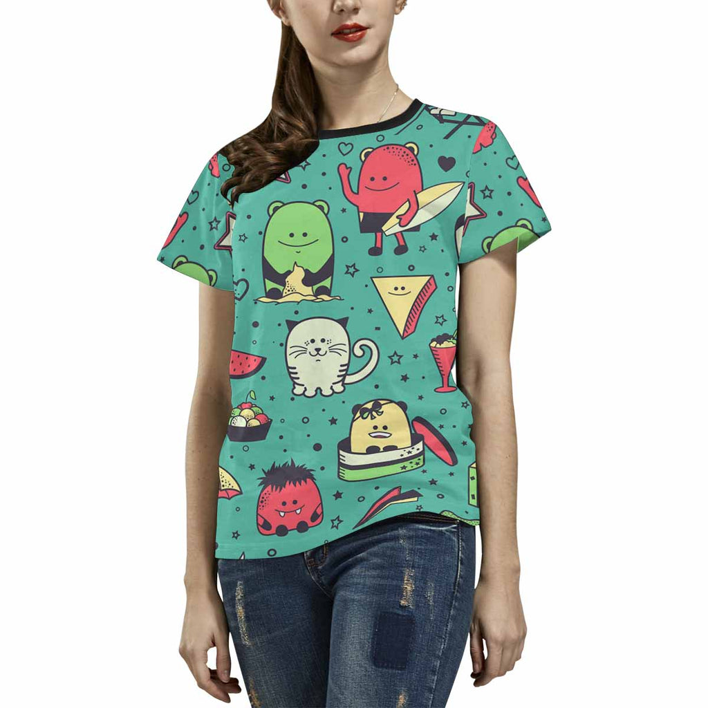 Womens tops t-shirts print with graphic Funny monsters pattern