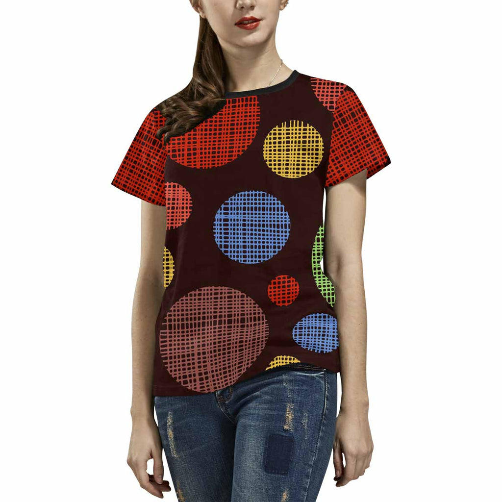 Womens tops t-shirts print with shading circles pattern