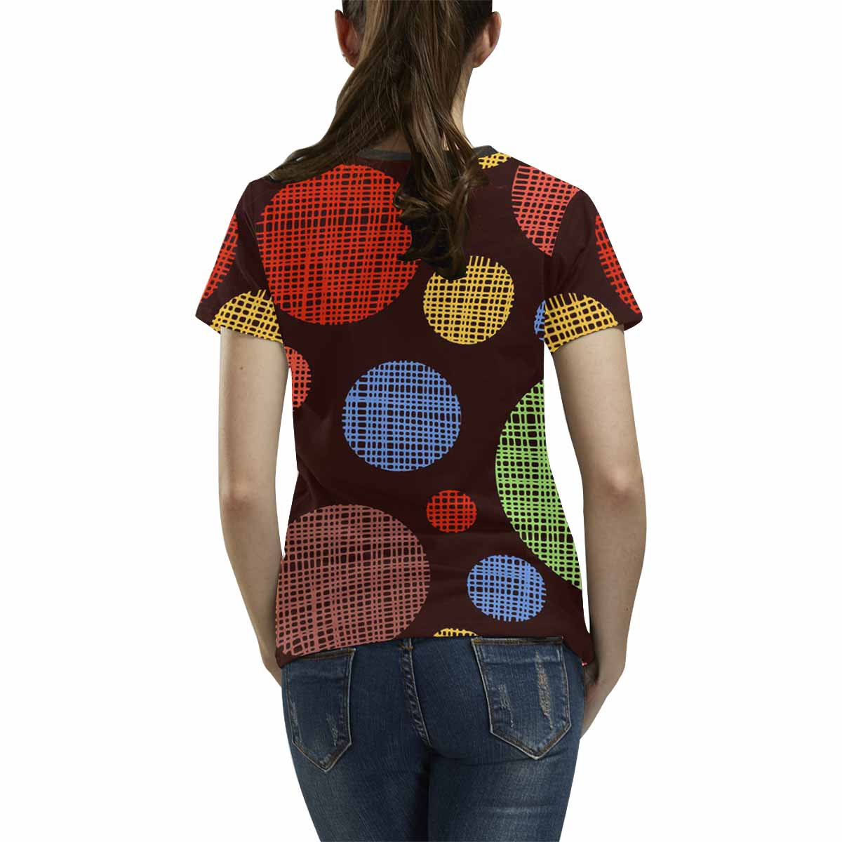 • 10.23 Oz. Polyester fabric. Dye-sublimation printing, Personalized all-over print T-shirt for women.