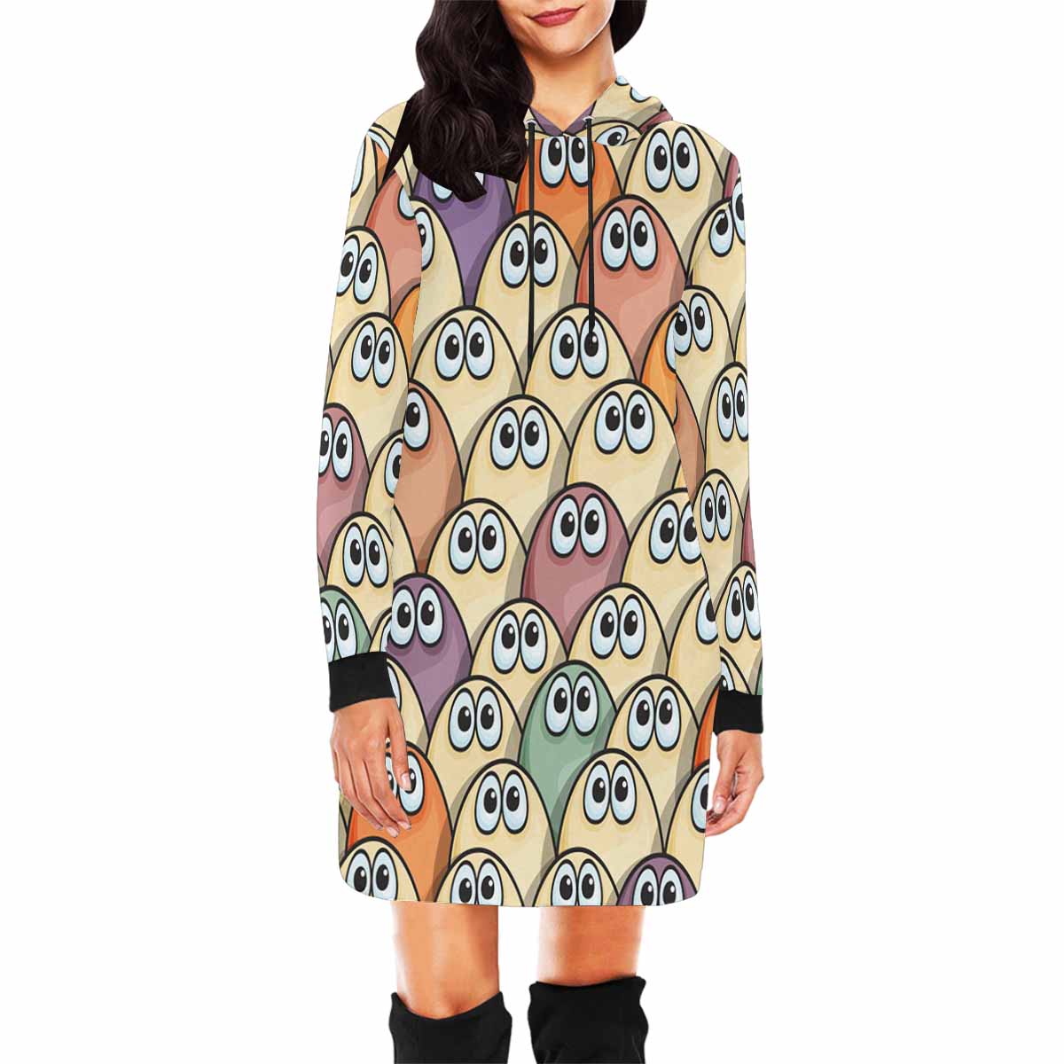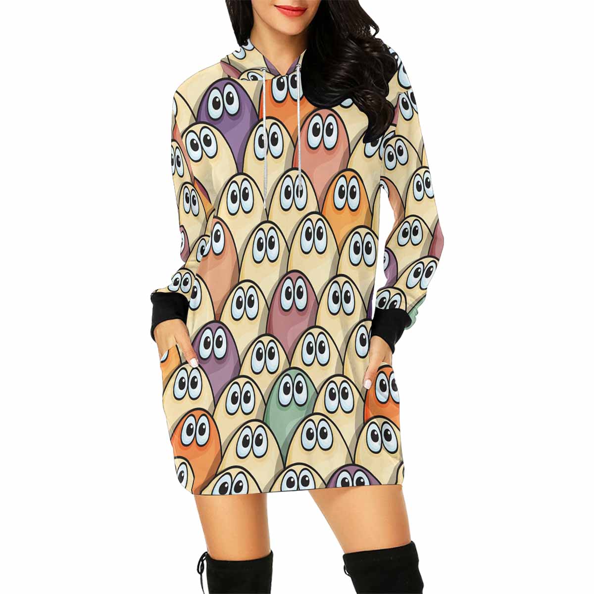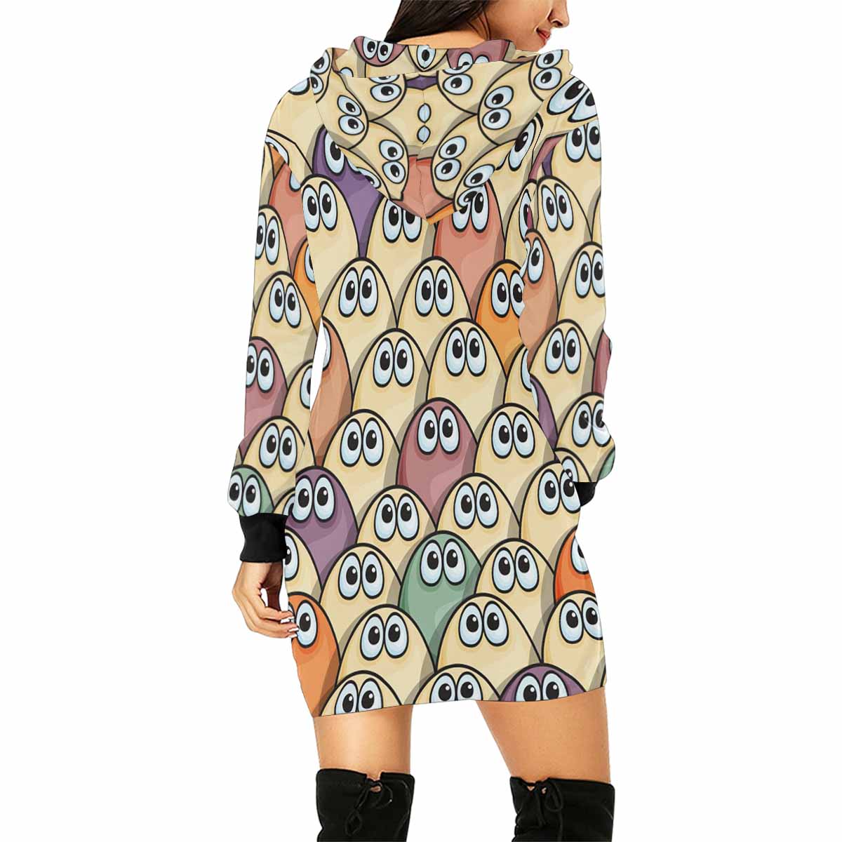 funny frightened eyes pattern Women's Mini Dress Hoodies