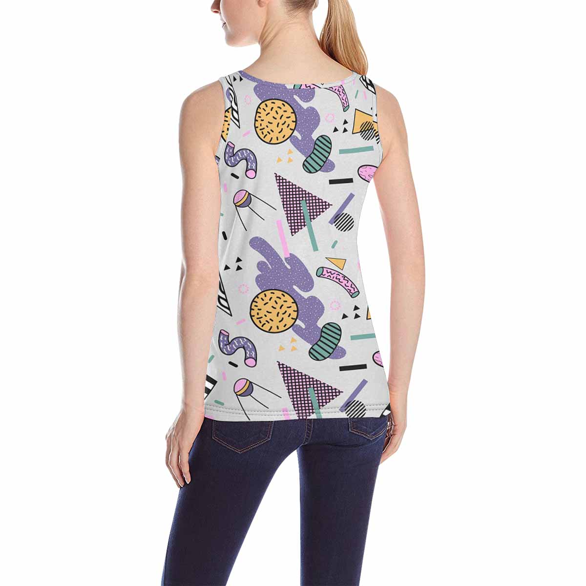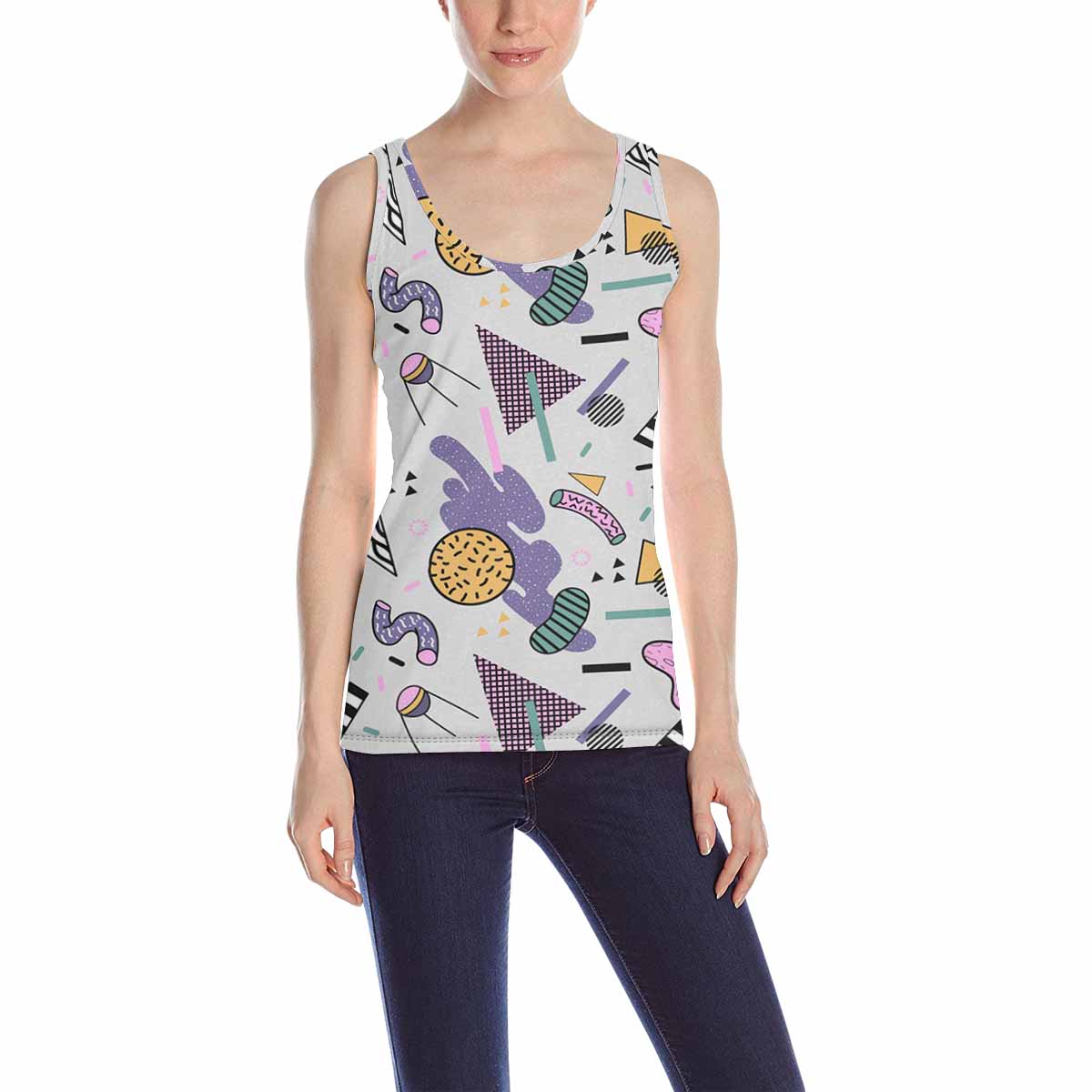 Women's Tank Top print with Abstract Trendy Memphis pattern