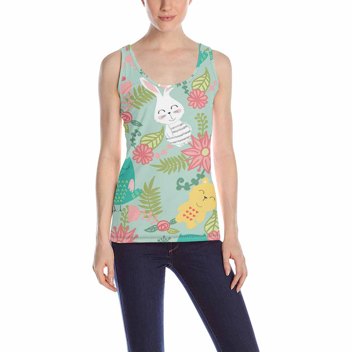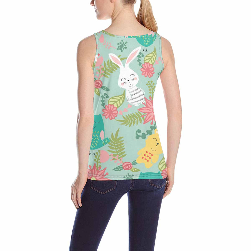 Women's Tank Top print with birds bears with flowers