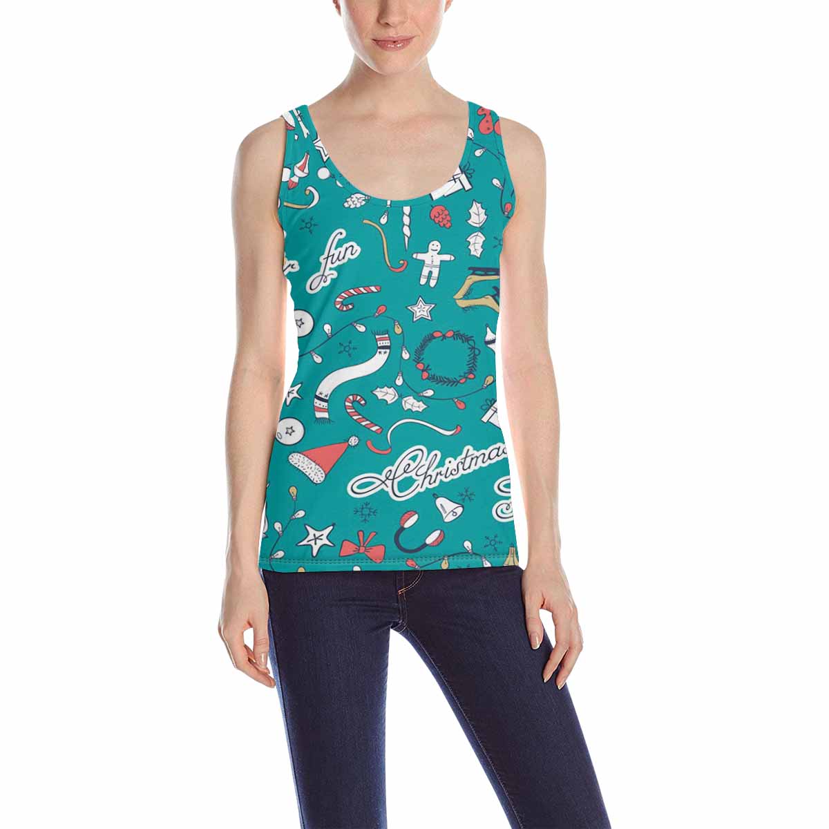 Women's Tank Top print with Christmas pattern with cartoon dog