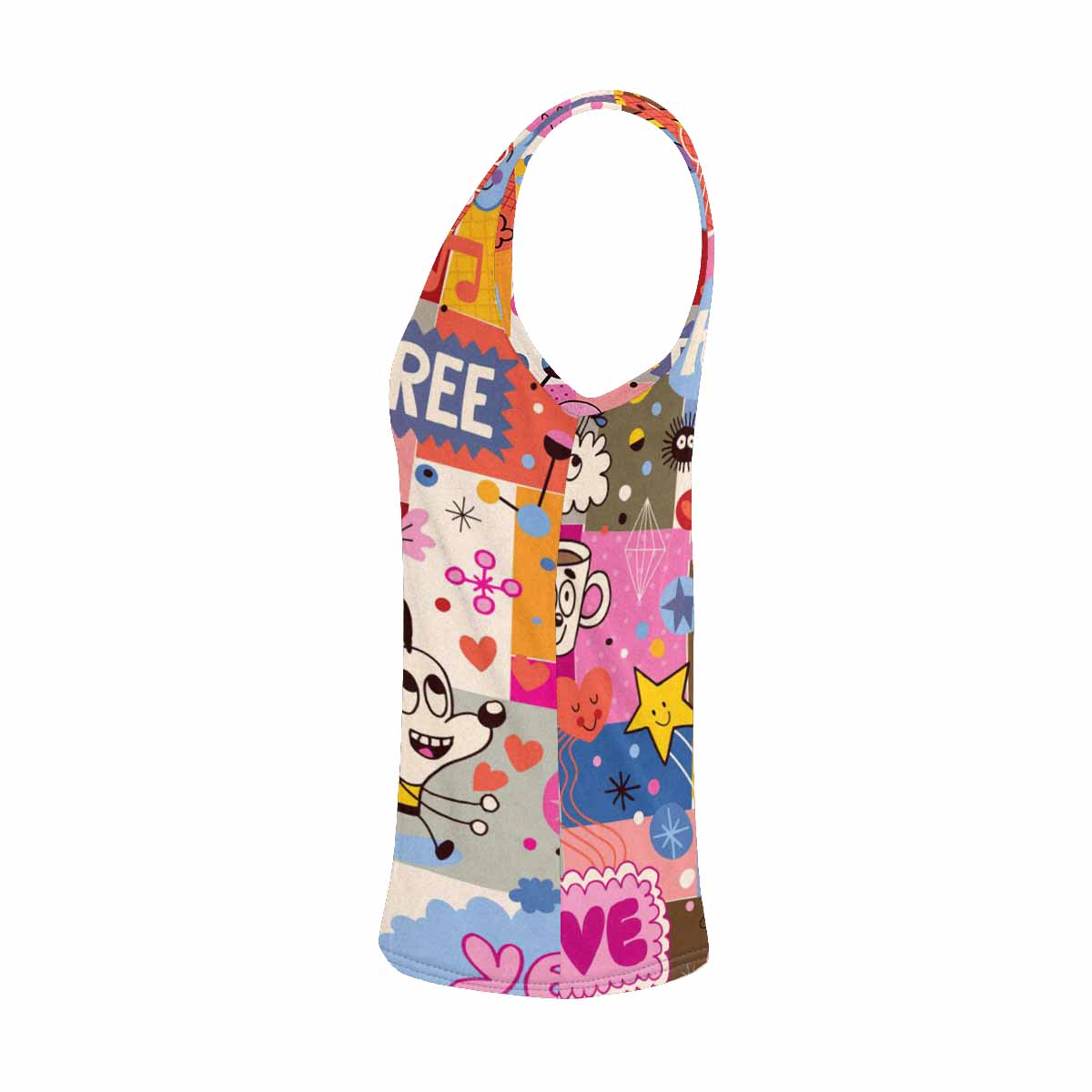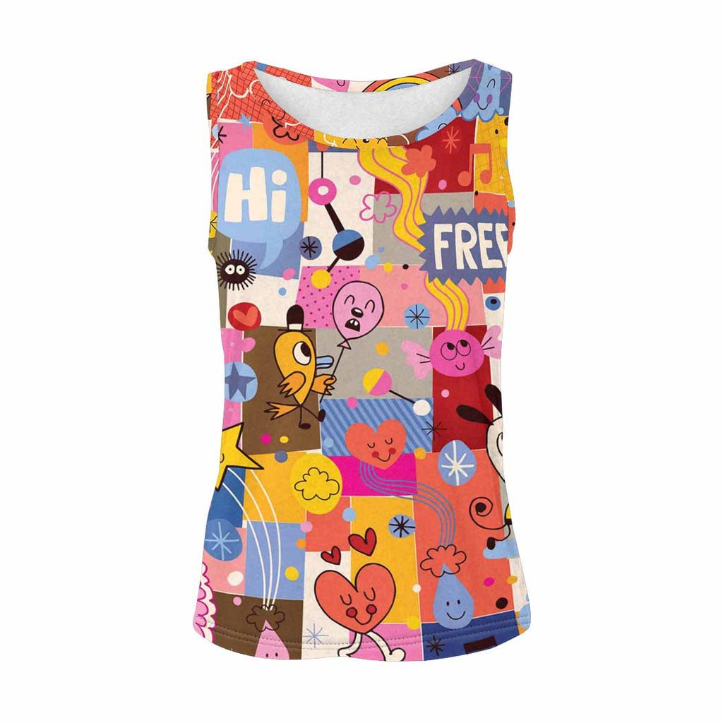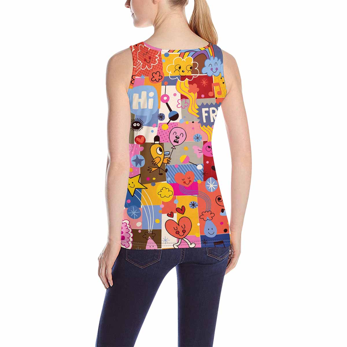 Women's Tank Top print with colorful cute sketchy cartoon pattern