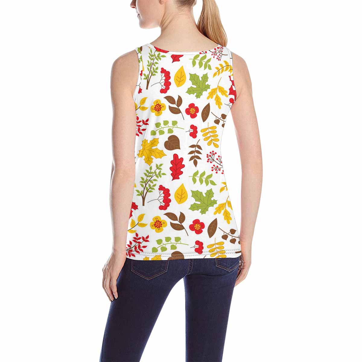Women's Tank Top print with colorful flowers leaves pattern