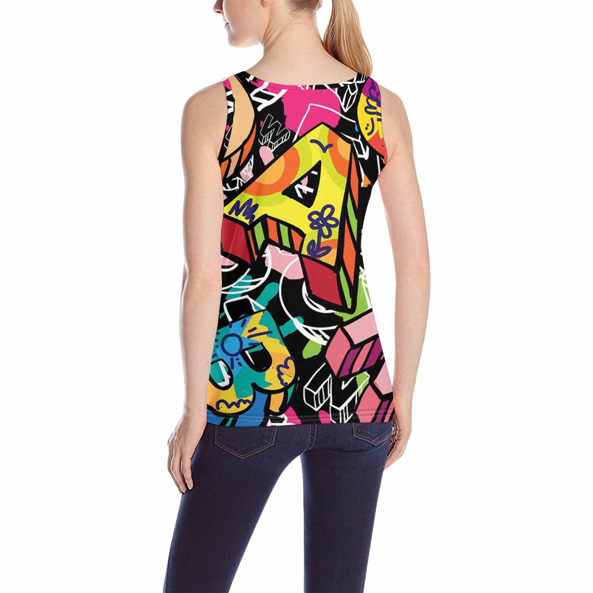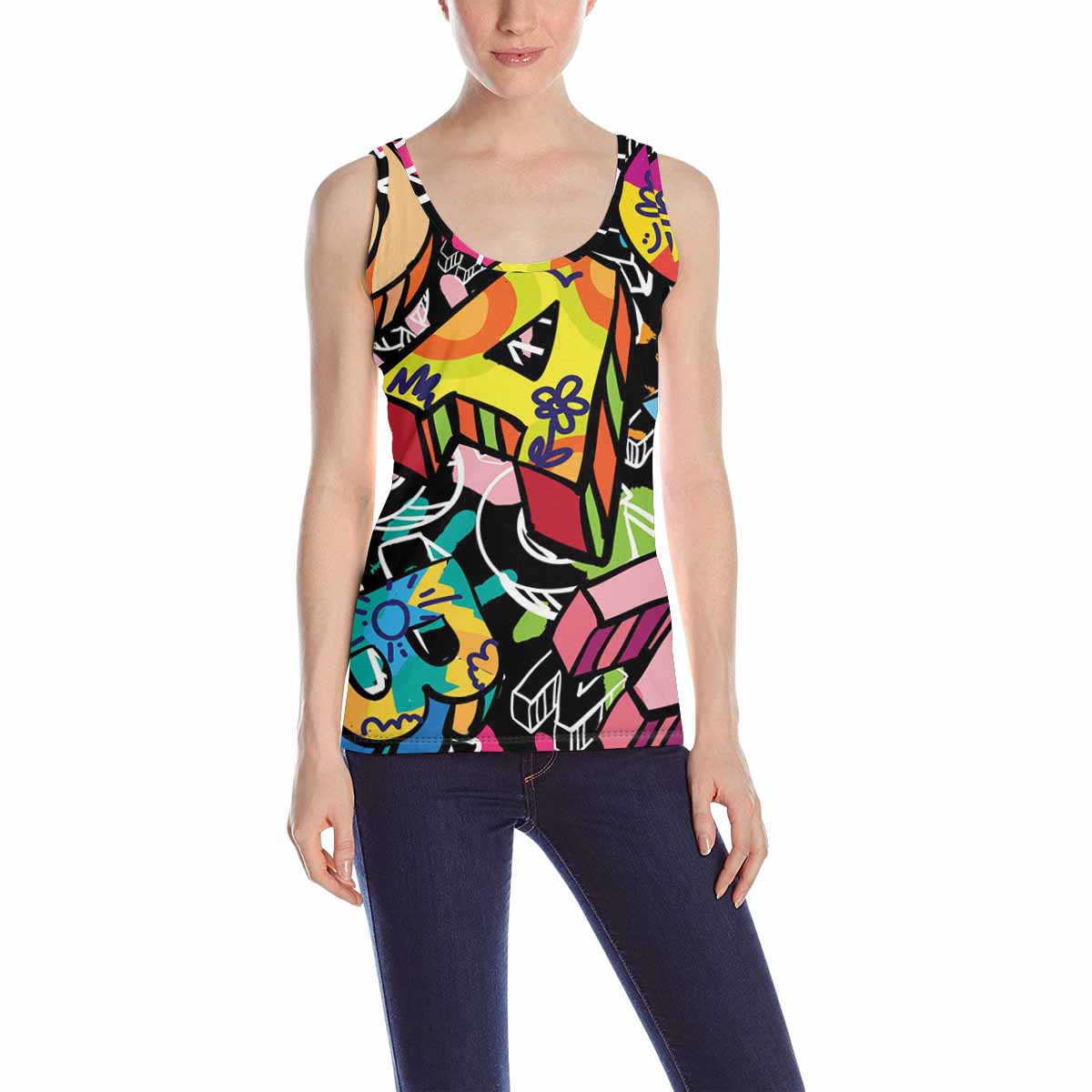 Women's Tank Top print with colorful letters doodle pattern