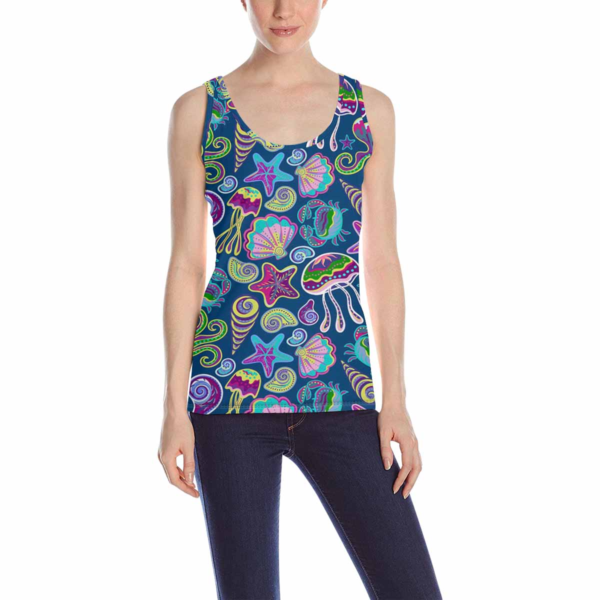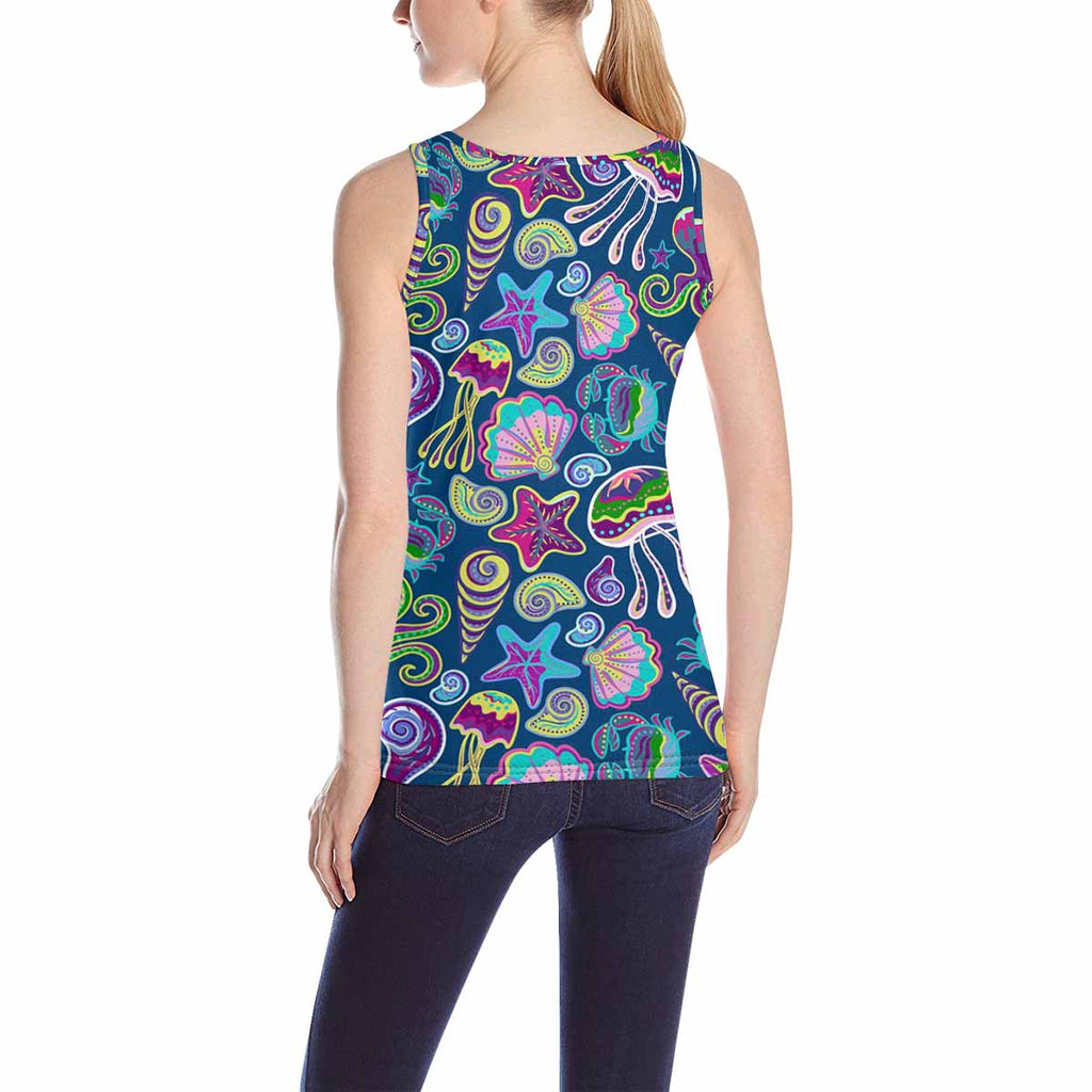 Women's Tank Top print with colorful ocean jellyfish pattern