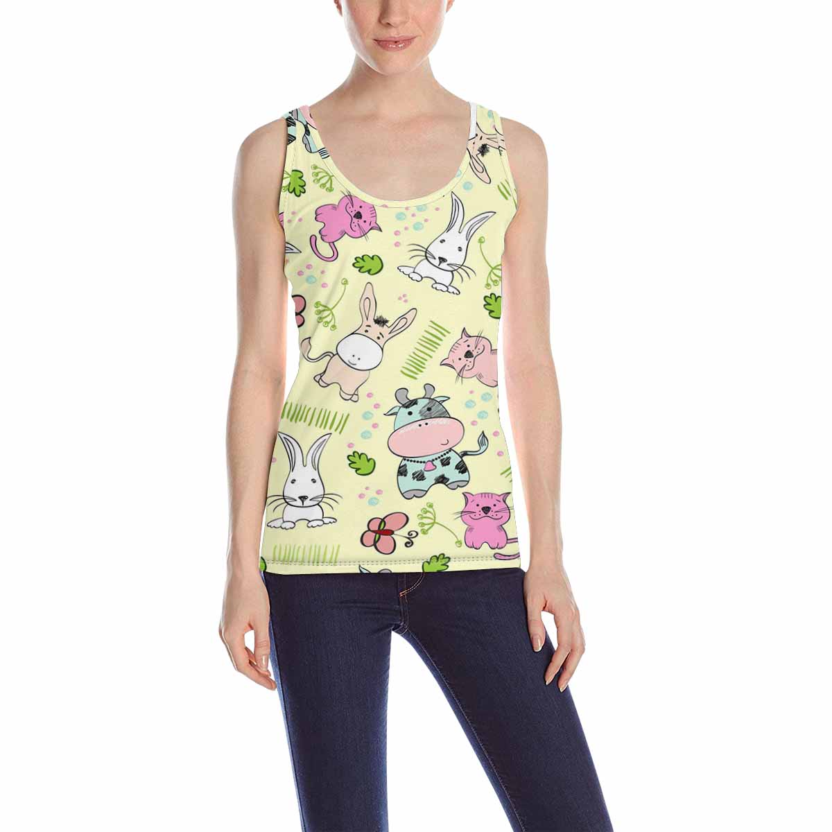 Women's Tank Top print with cute Cow rabbit cats pattern
