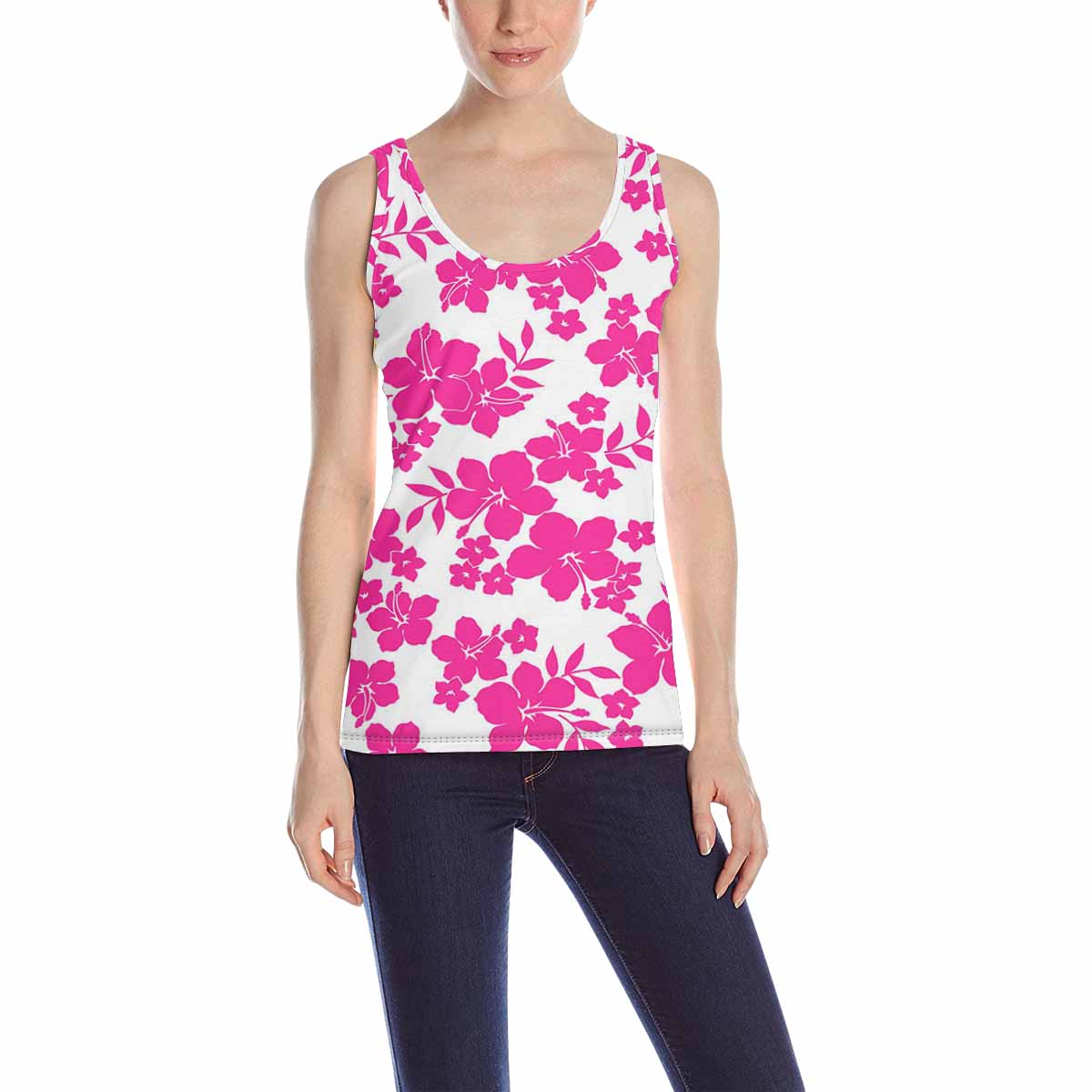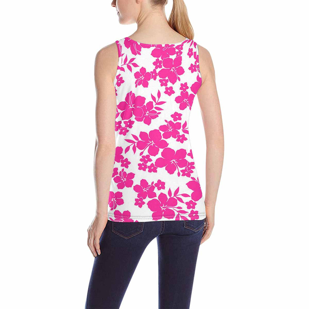 Women's Tank Top print with dark pink flowers pattern