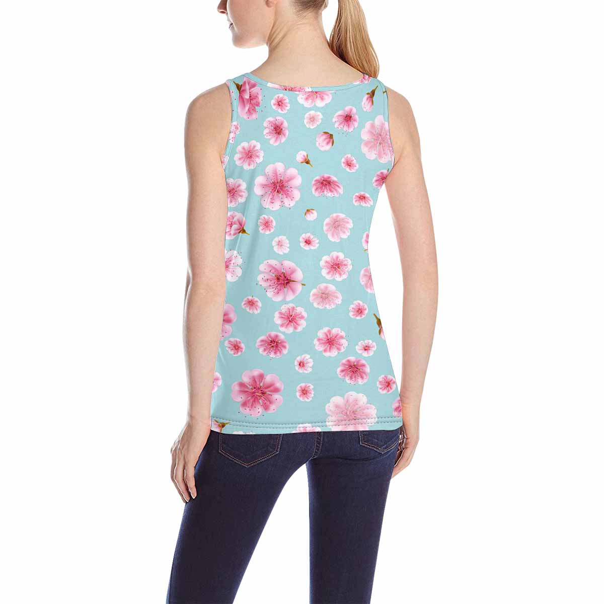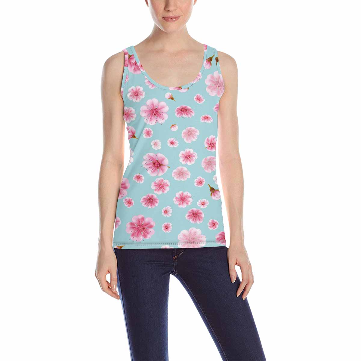 Women's Tank Top print with pink Sakura flowers pattern