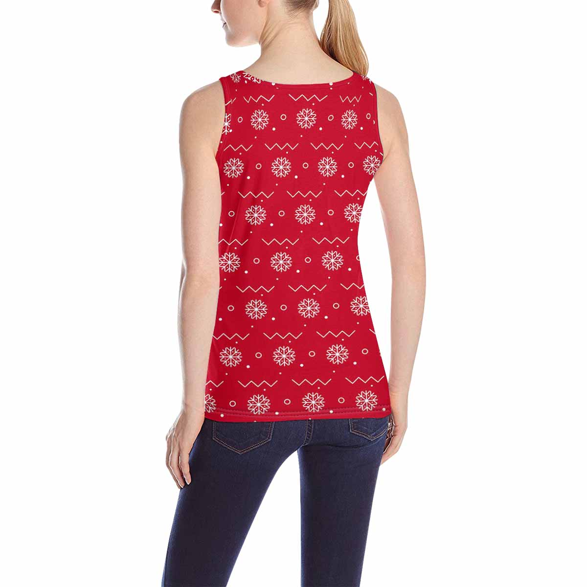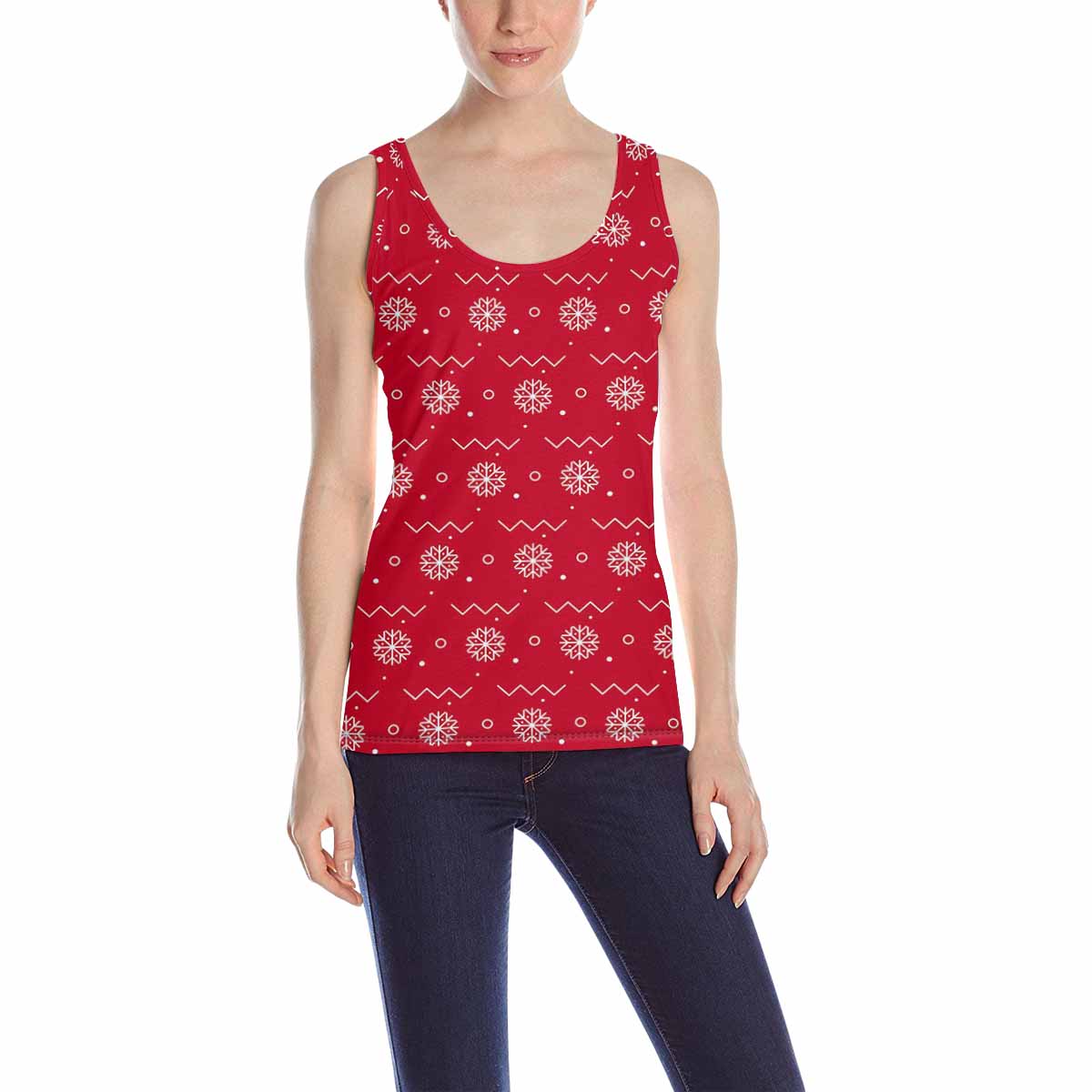 Women's Tank Top print with red snowflake pattern