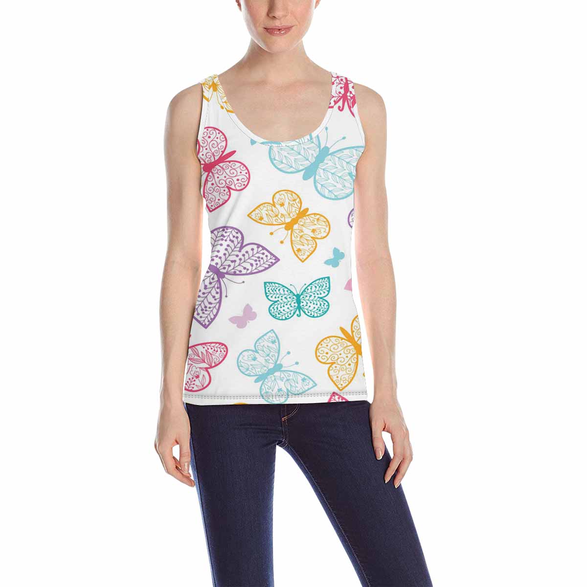 Womens Tank Tops print with colorful Floral butterflies