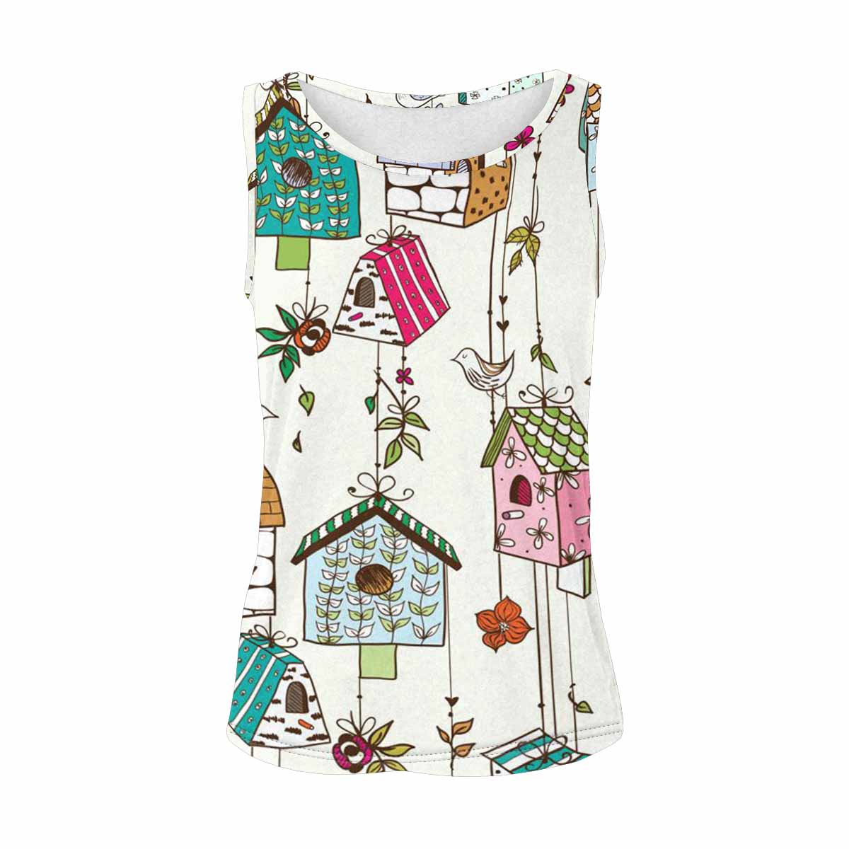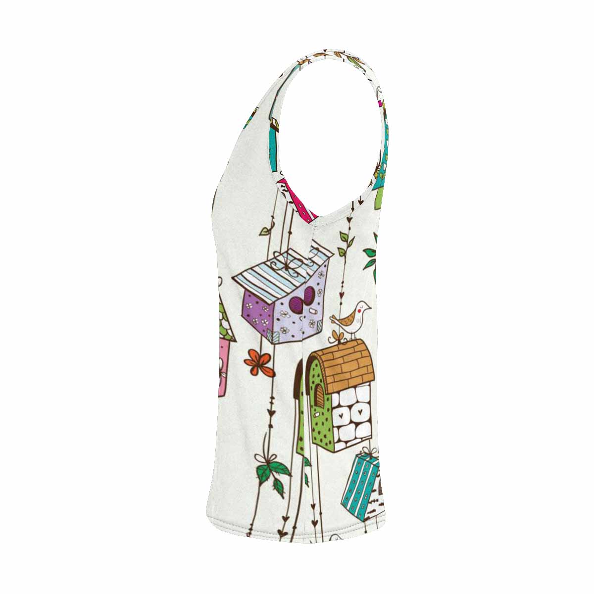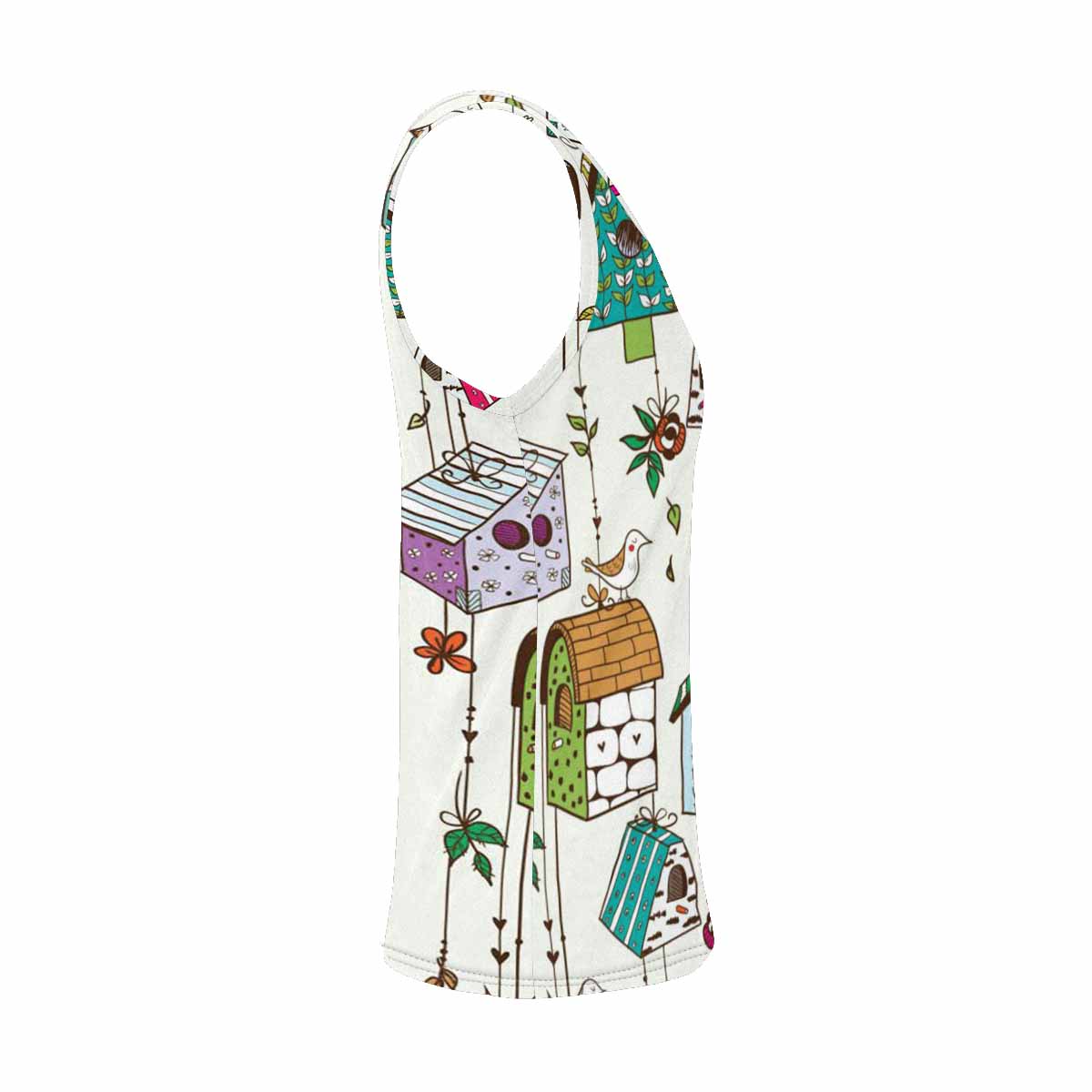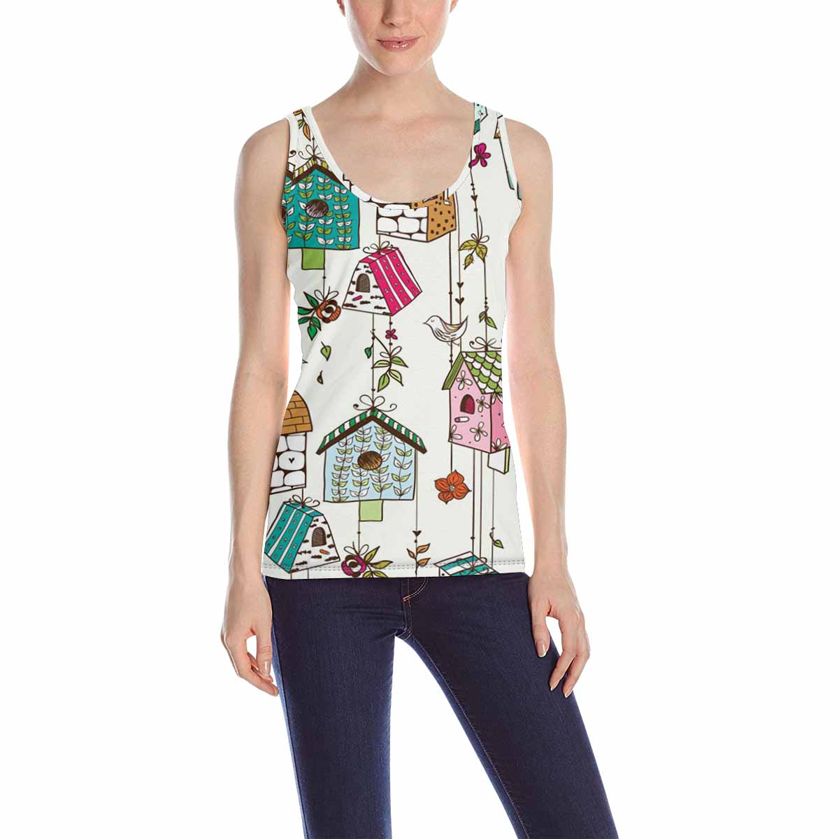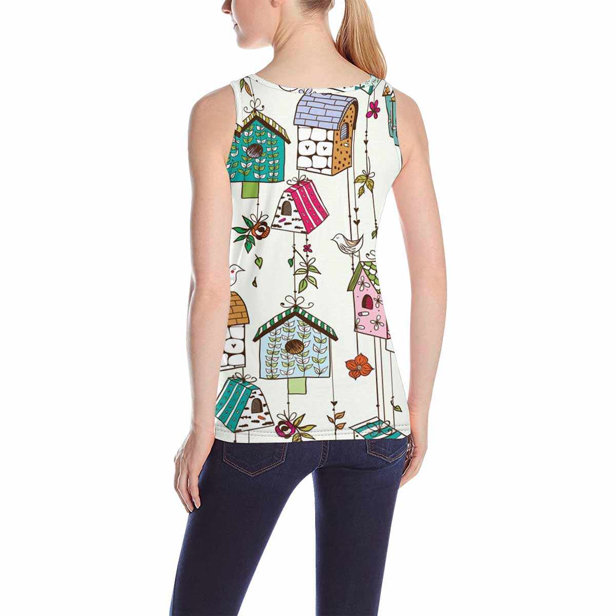 Womens Tank Tops print with Doodle nesting boxes with birds