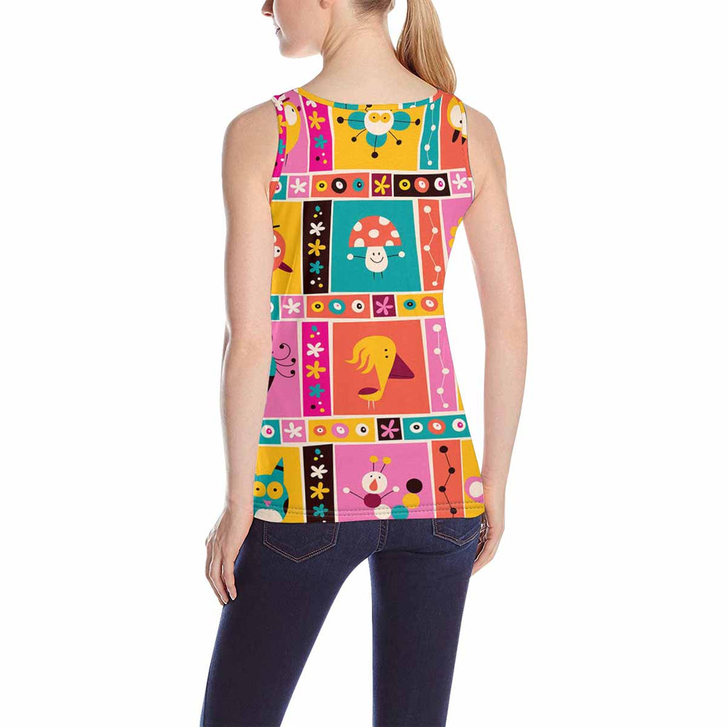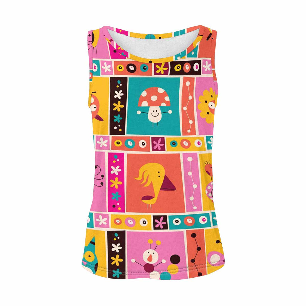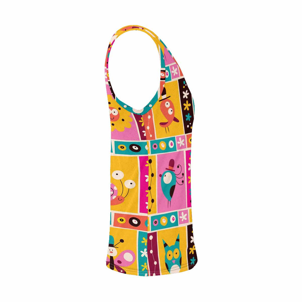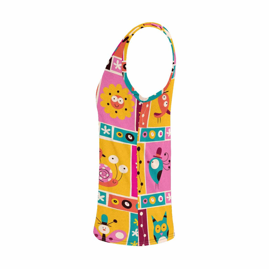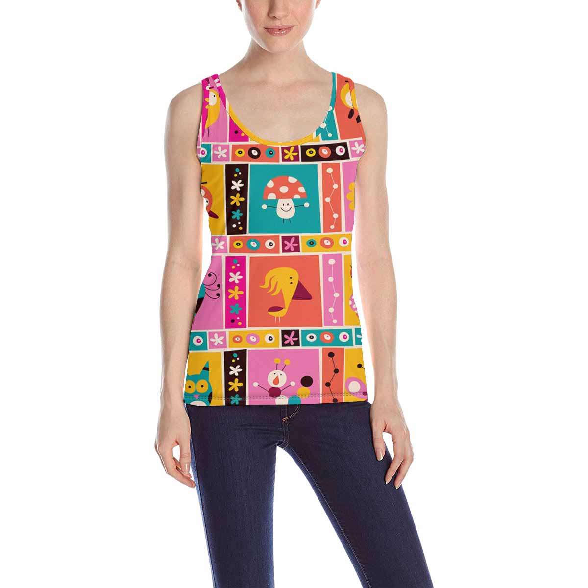 Womens Tank Tops print with Flowers birds mushrooms snails pattern
