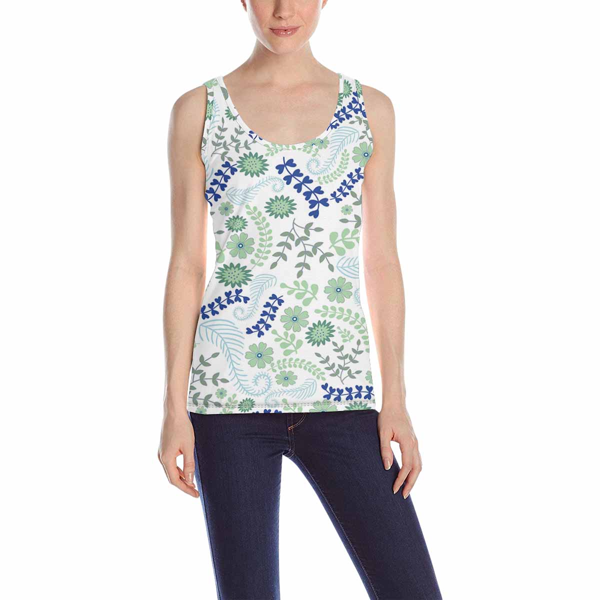 Womens Tank Tops print with graphic flowers leaves pattern