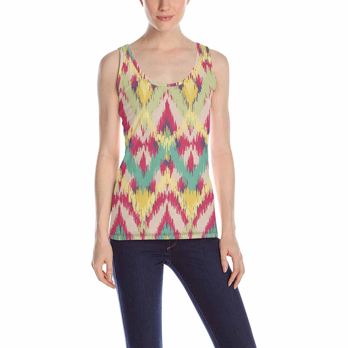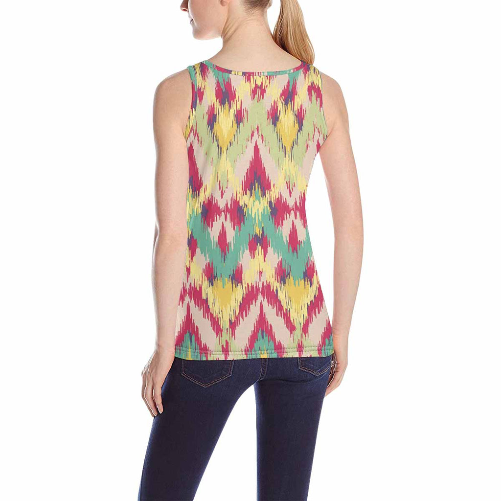 Womens Tank Tops print with ikat ethnic pattern
