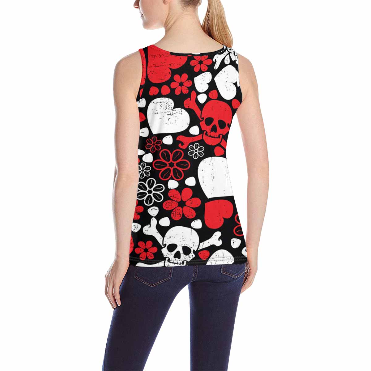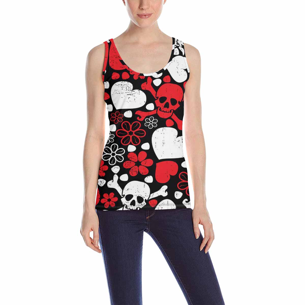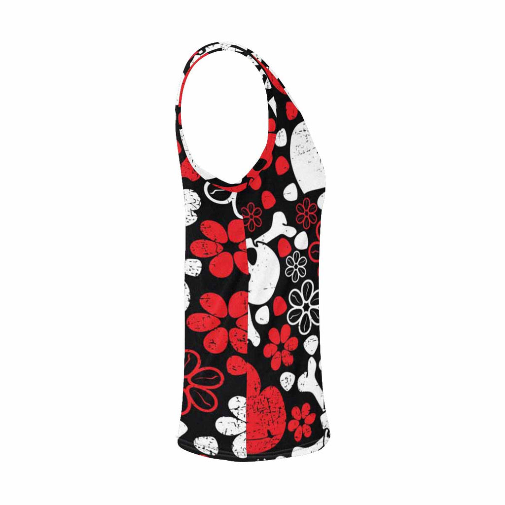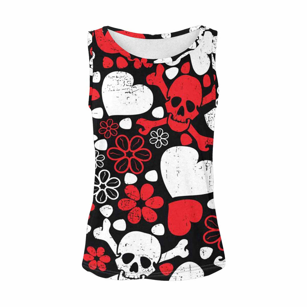 Womens Tank Tops print with Red skulls in flowers and harts
