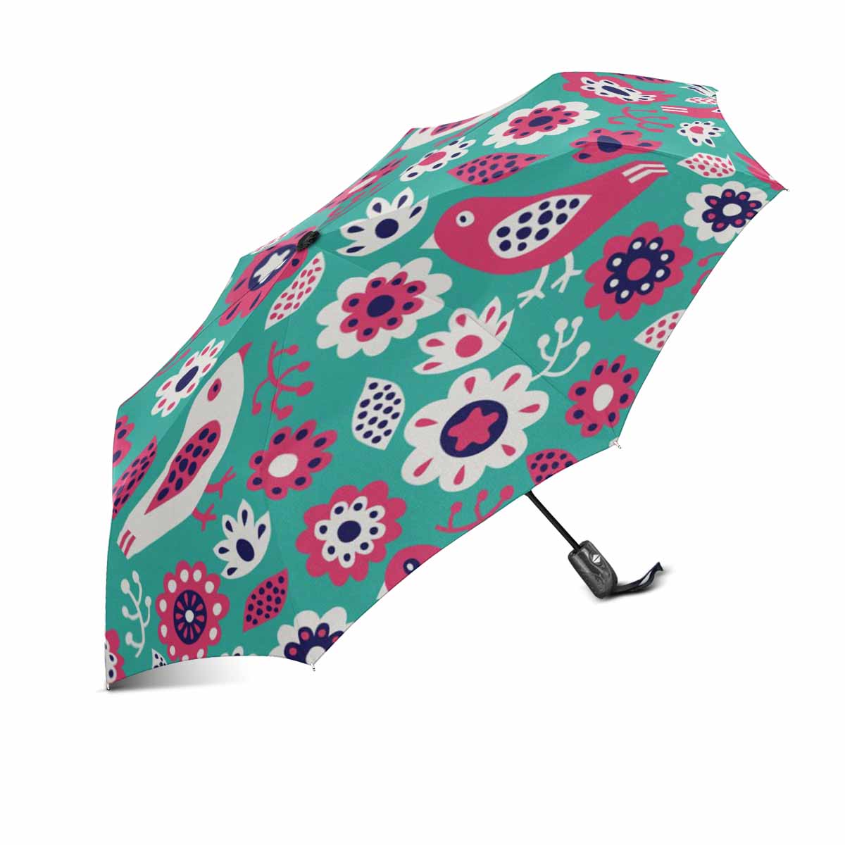 Bird and flower pattern automatic umbrella foldable with totes