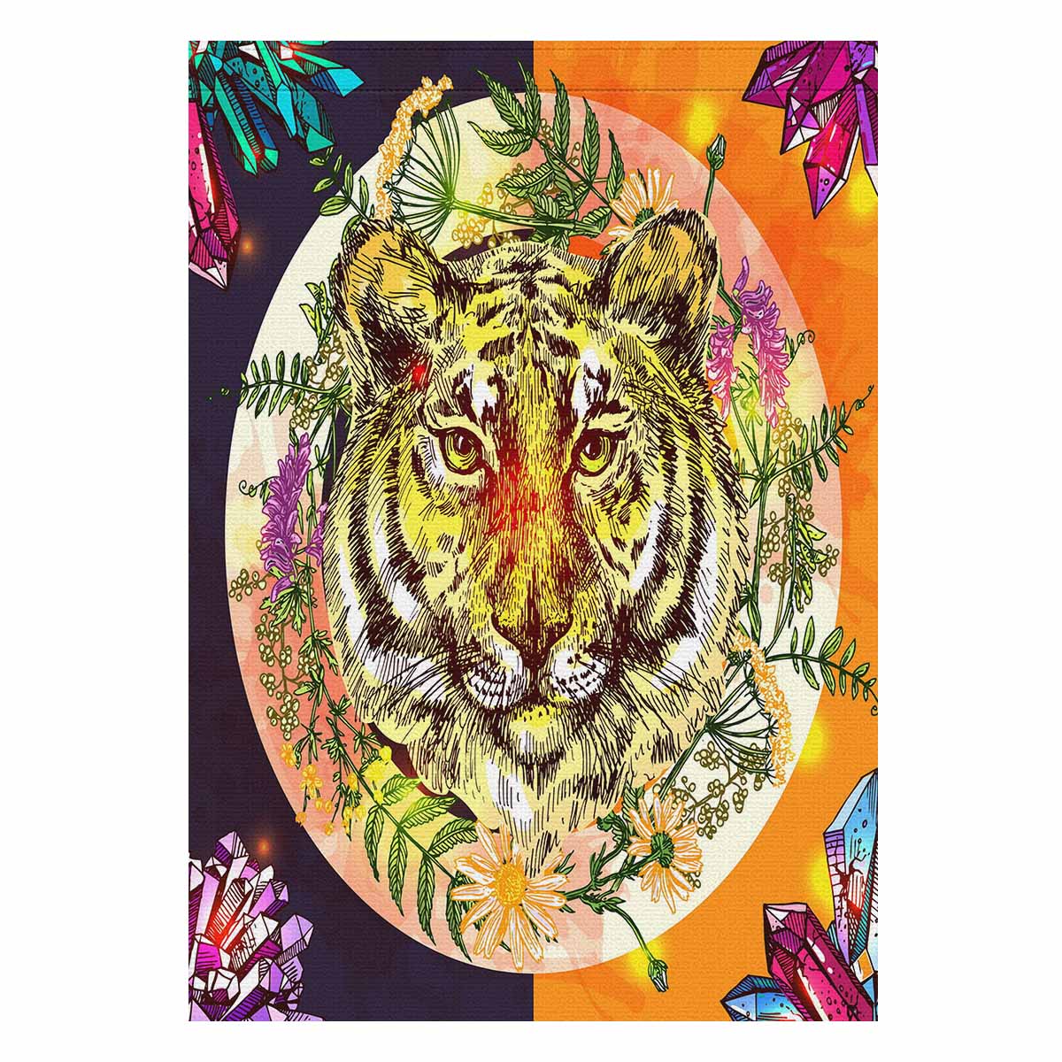 Garden Flags printed animals themed with boho style illustration portrait of tiger