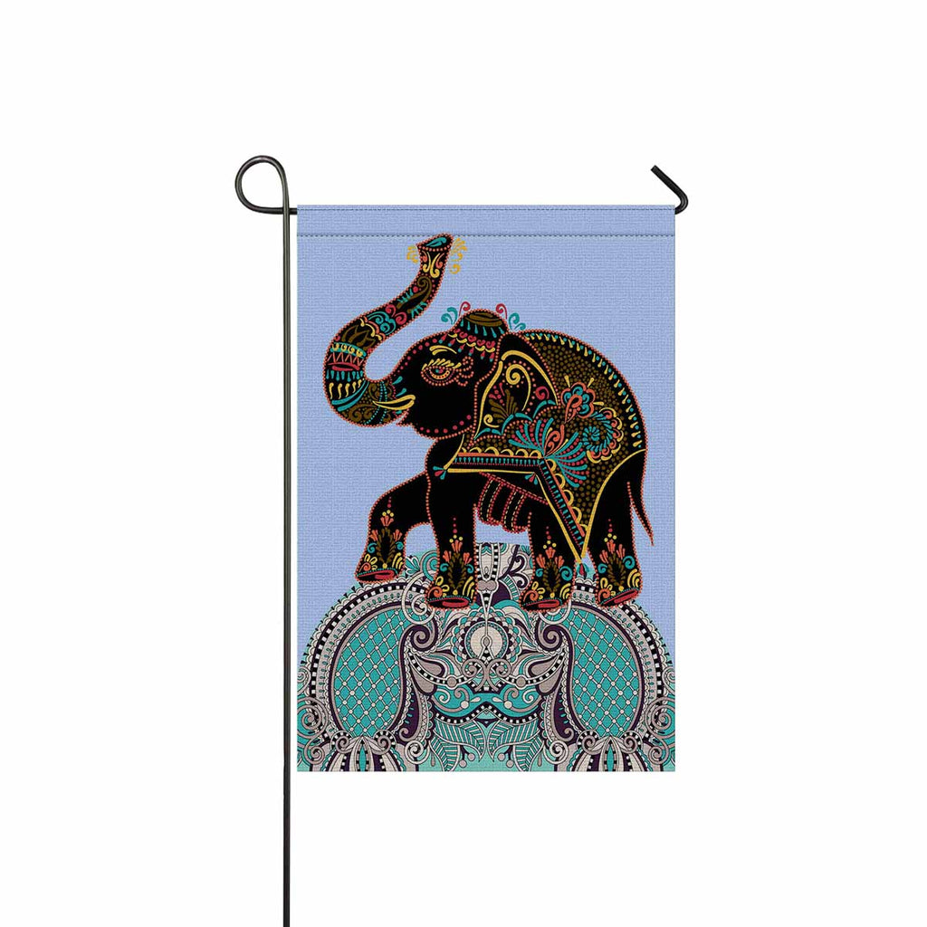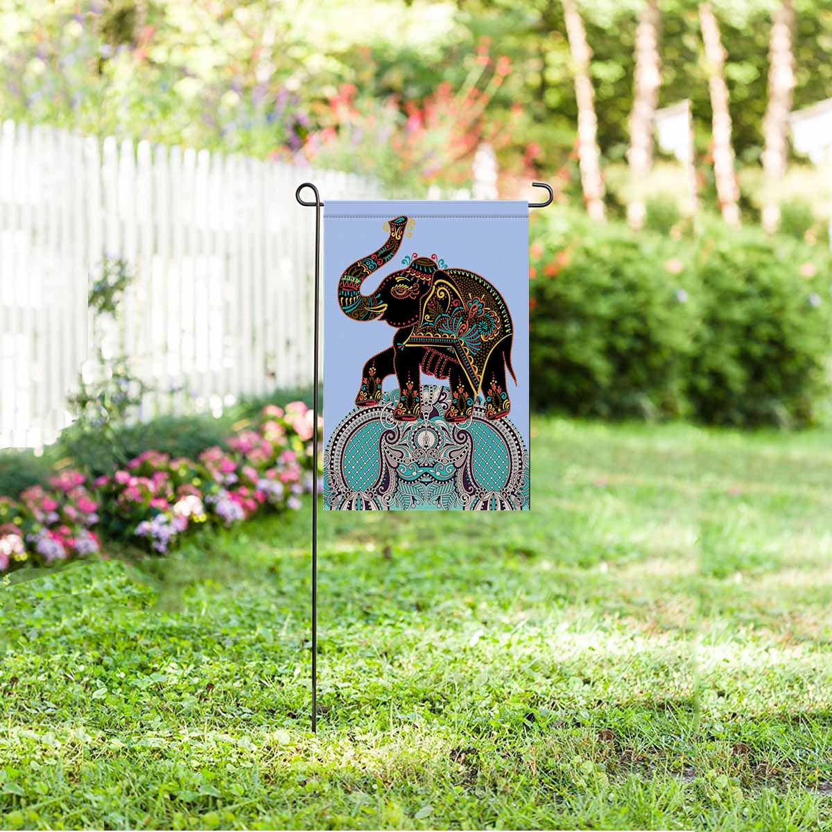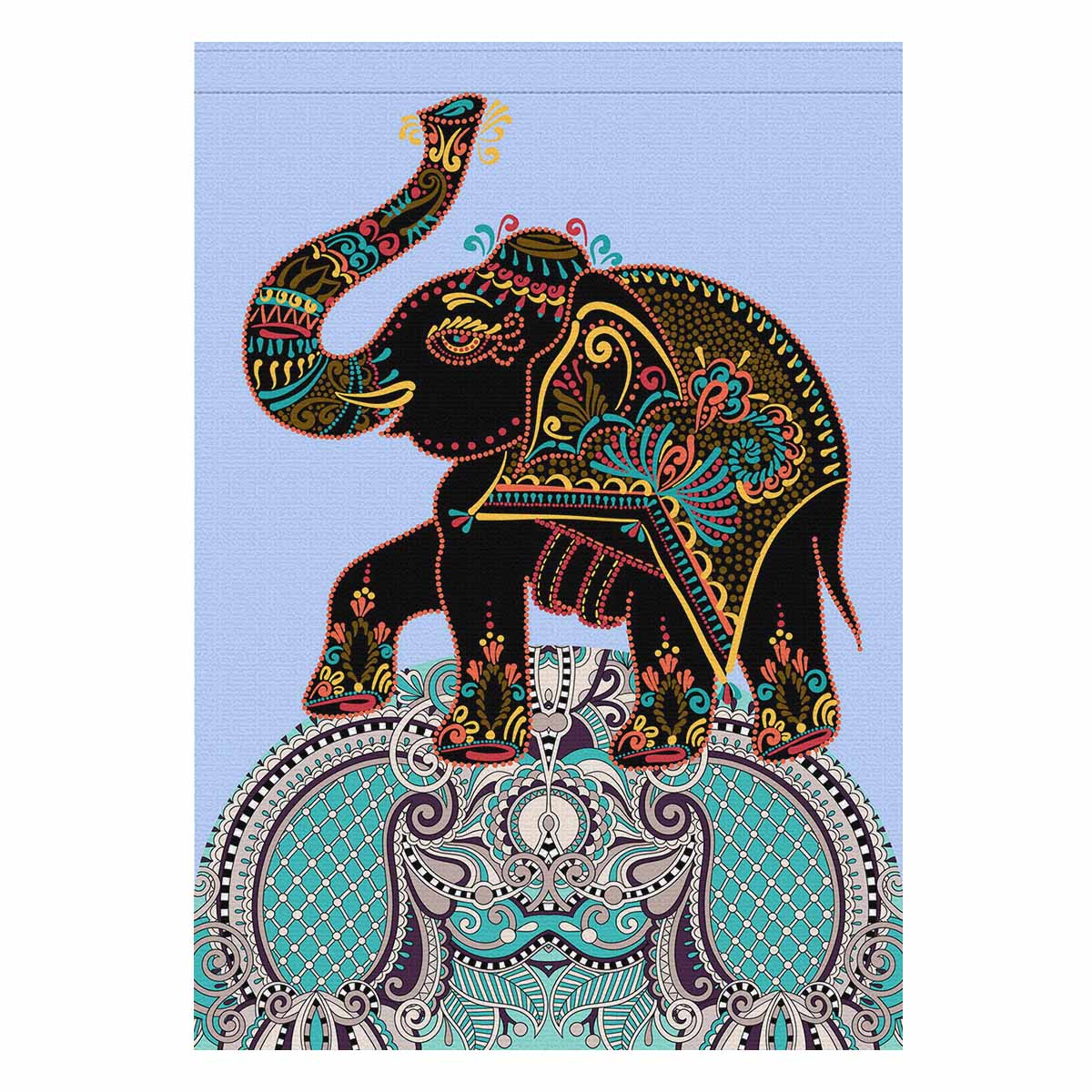 Garden Flags printed animals themed with Ethnic Folk art indian elephant, vector dot painting illustration