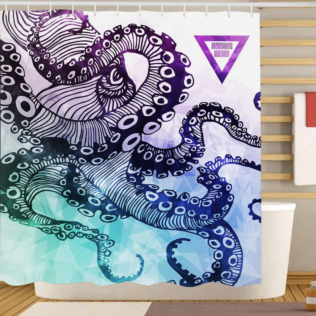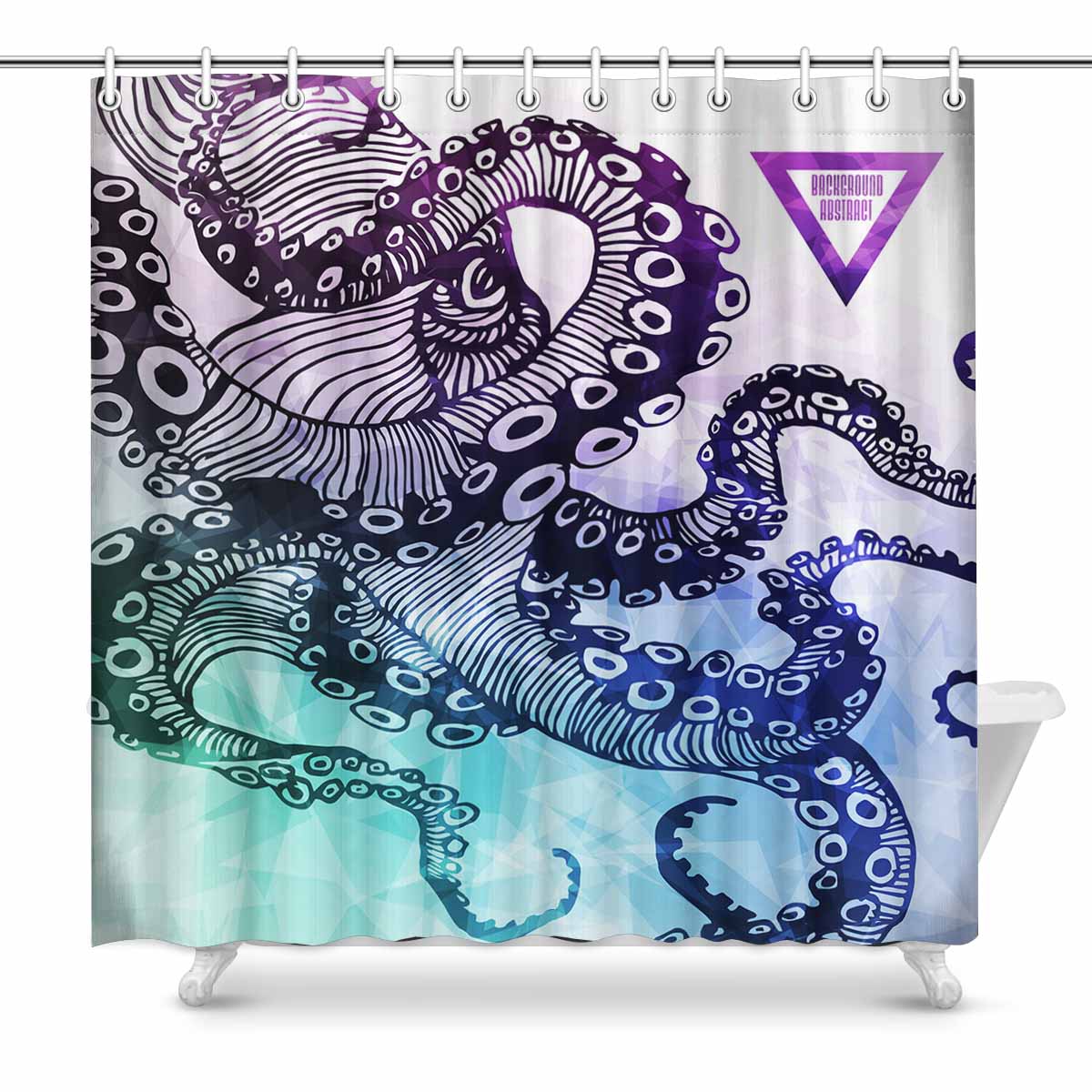 Shower Curtains print with Abstract Octopus with polygon crystal element