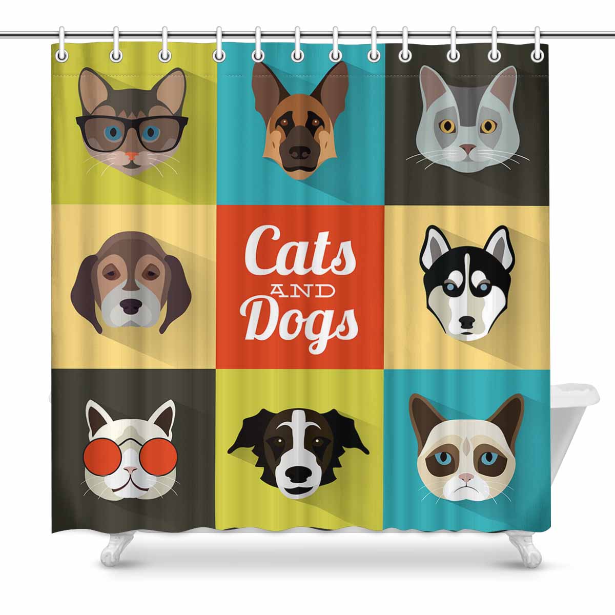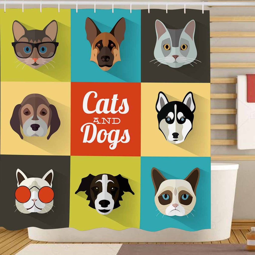 Shower Curtains print with Animal Portrait Set with Flat DesignCats and Dogs