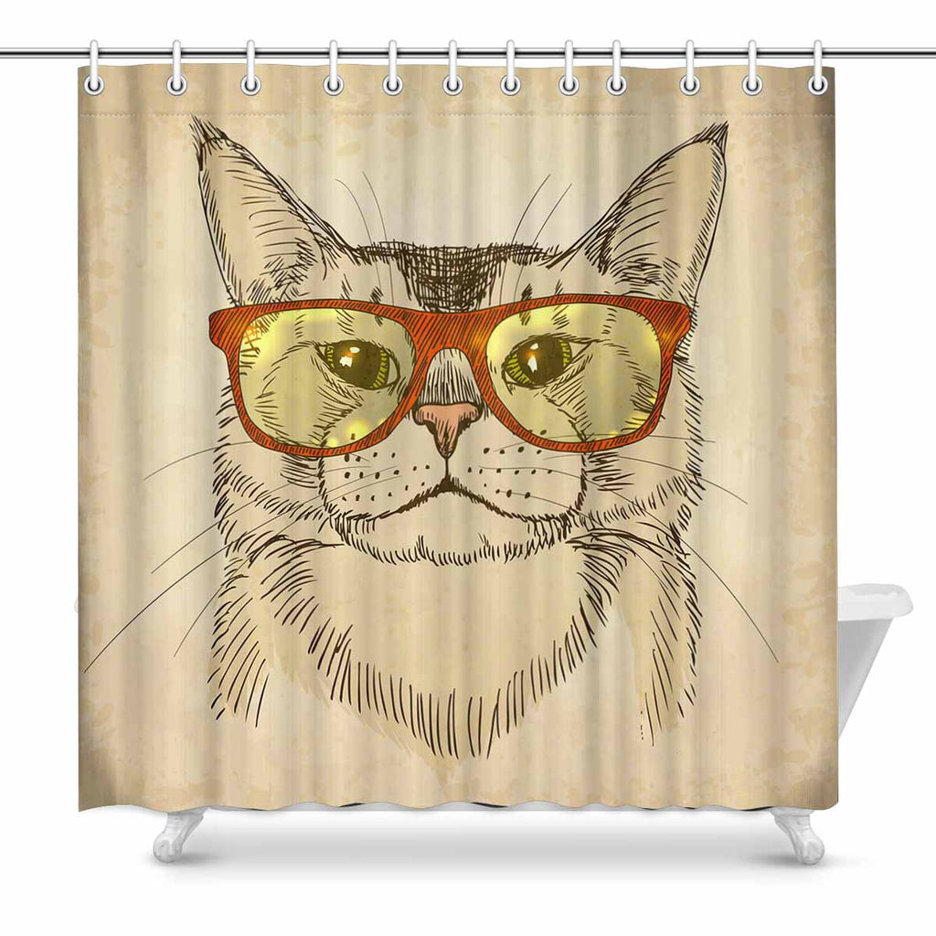 Shower Curtains print with Cat with glasses and scarf