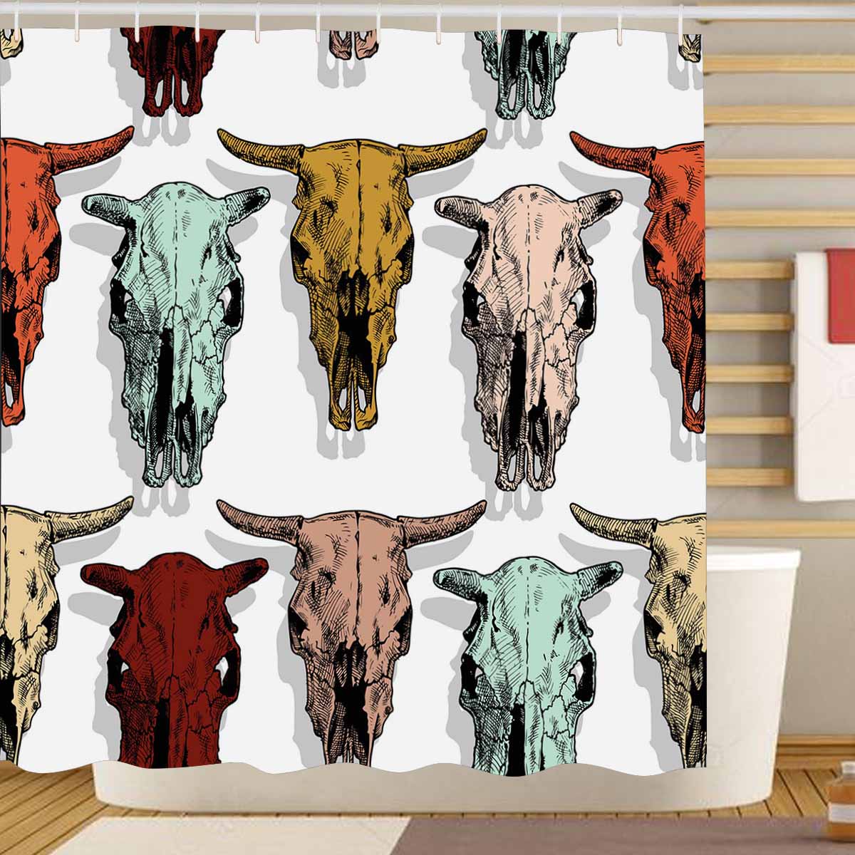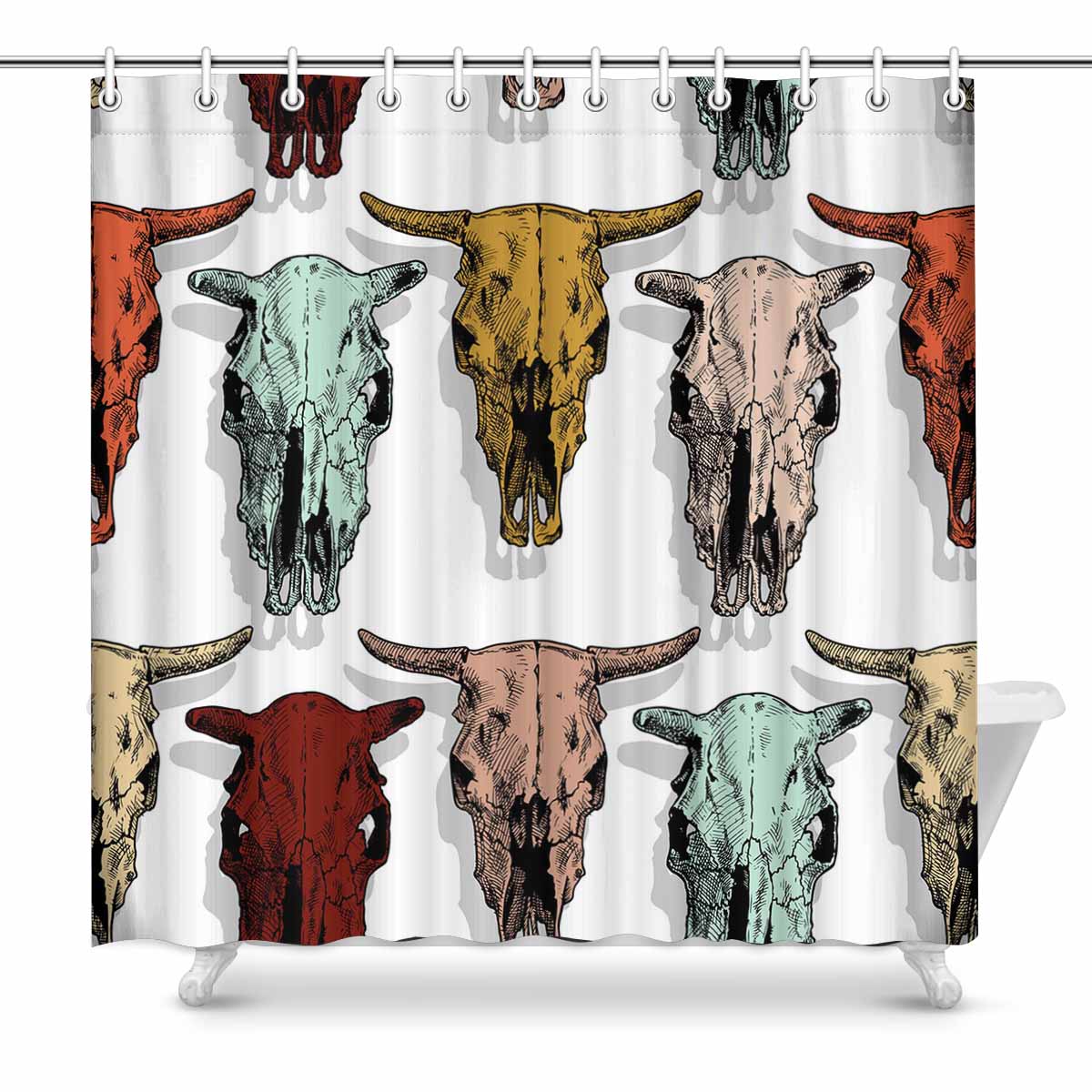 Shower Curtains print with cow and bull skull