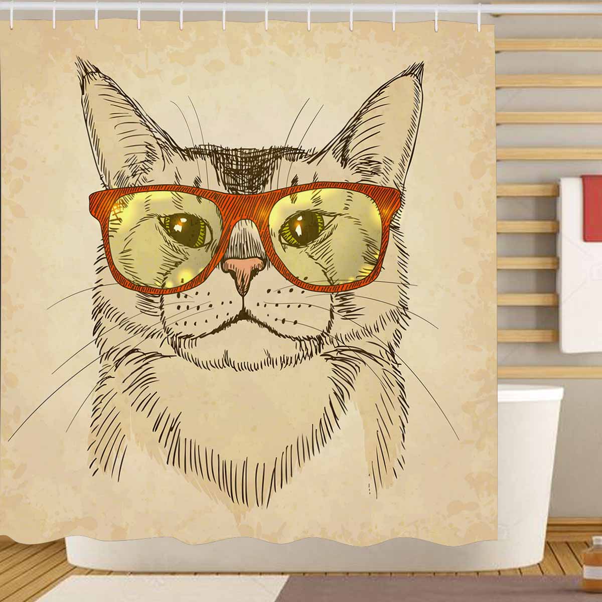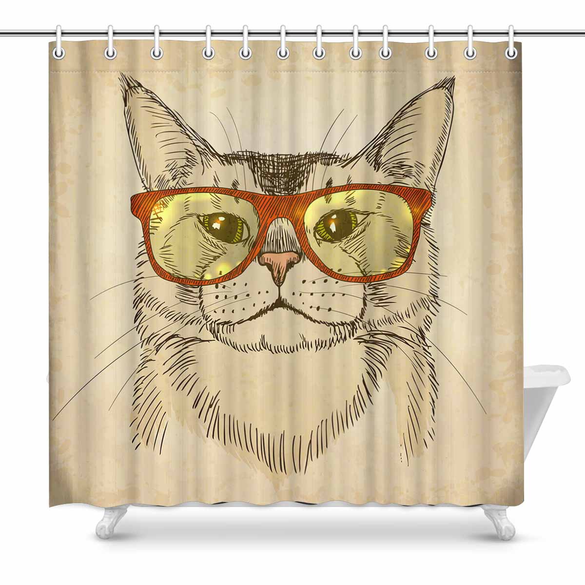 Shower Curtains print with Hipster Cat with Eyeglasses
