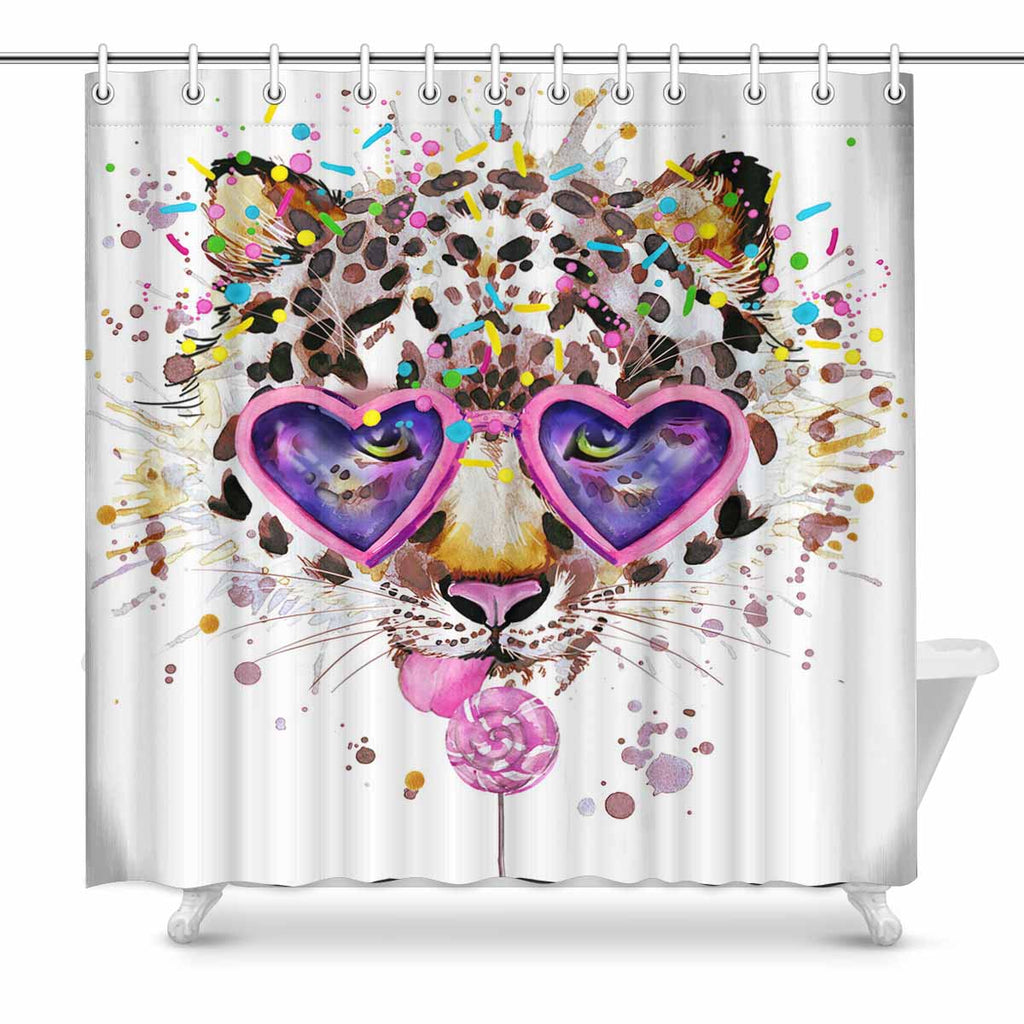 Shower Curtains print with illustration of Leopard