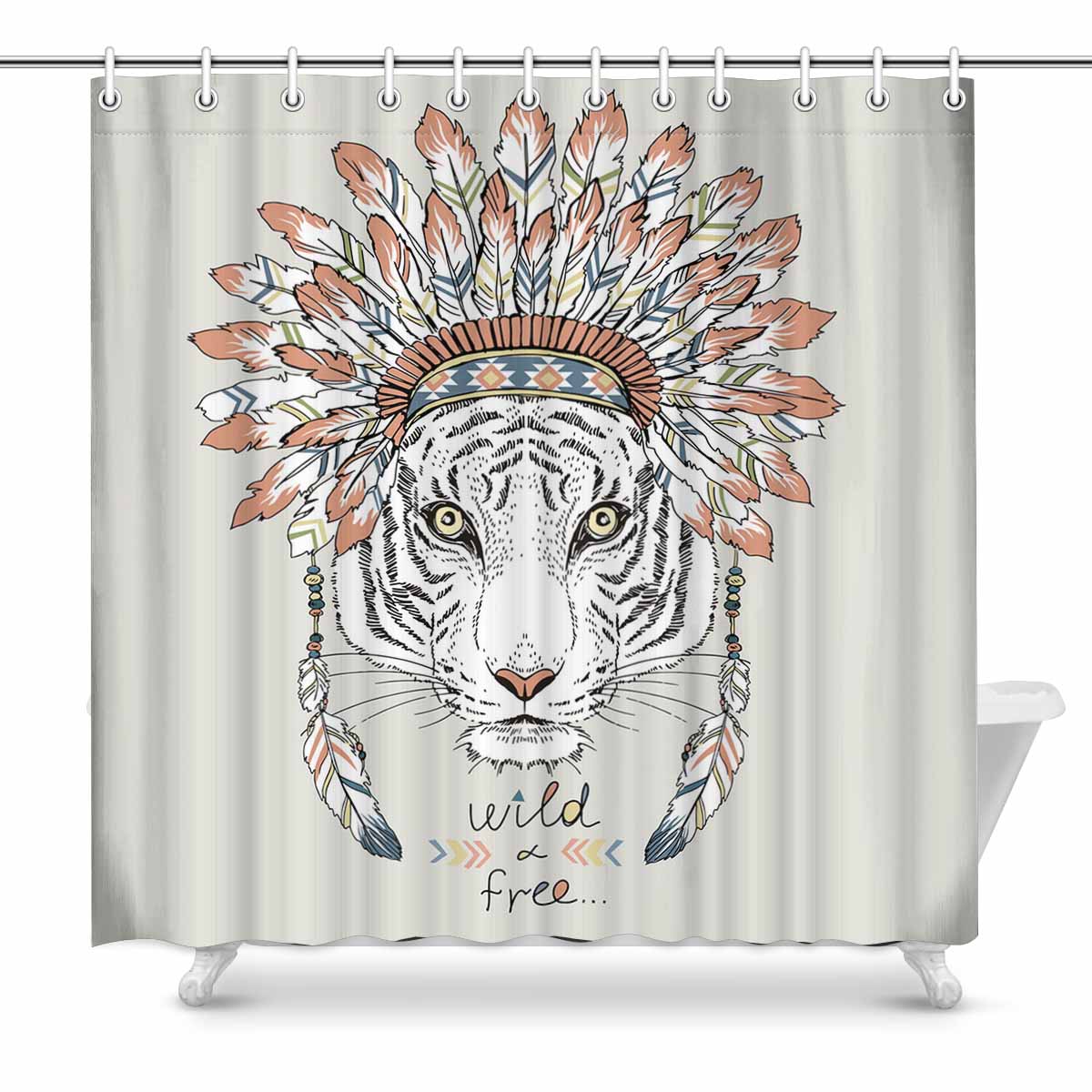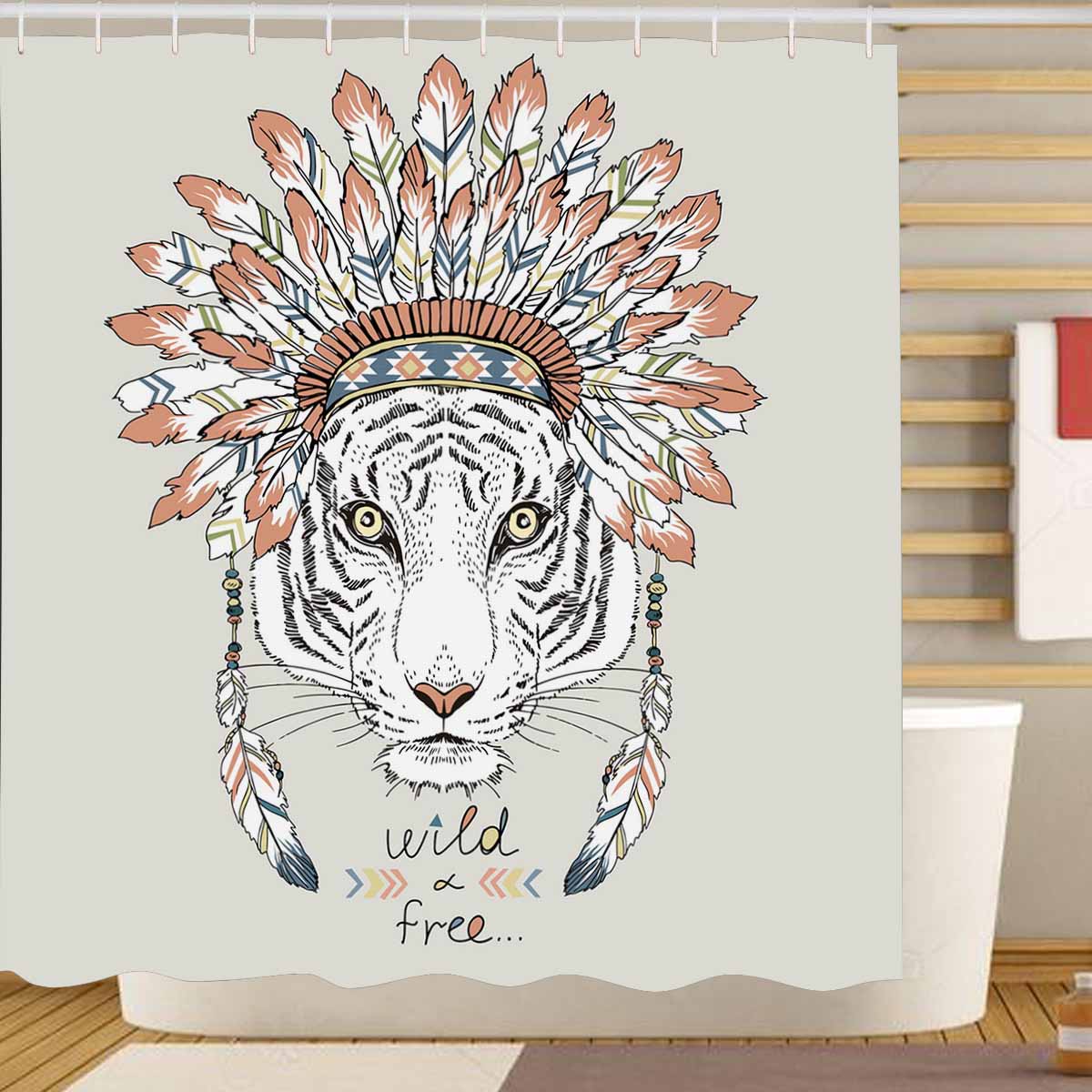 Shower Curtains print with Native american tiger in war bonnet