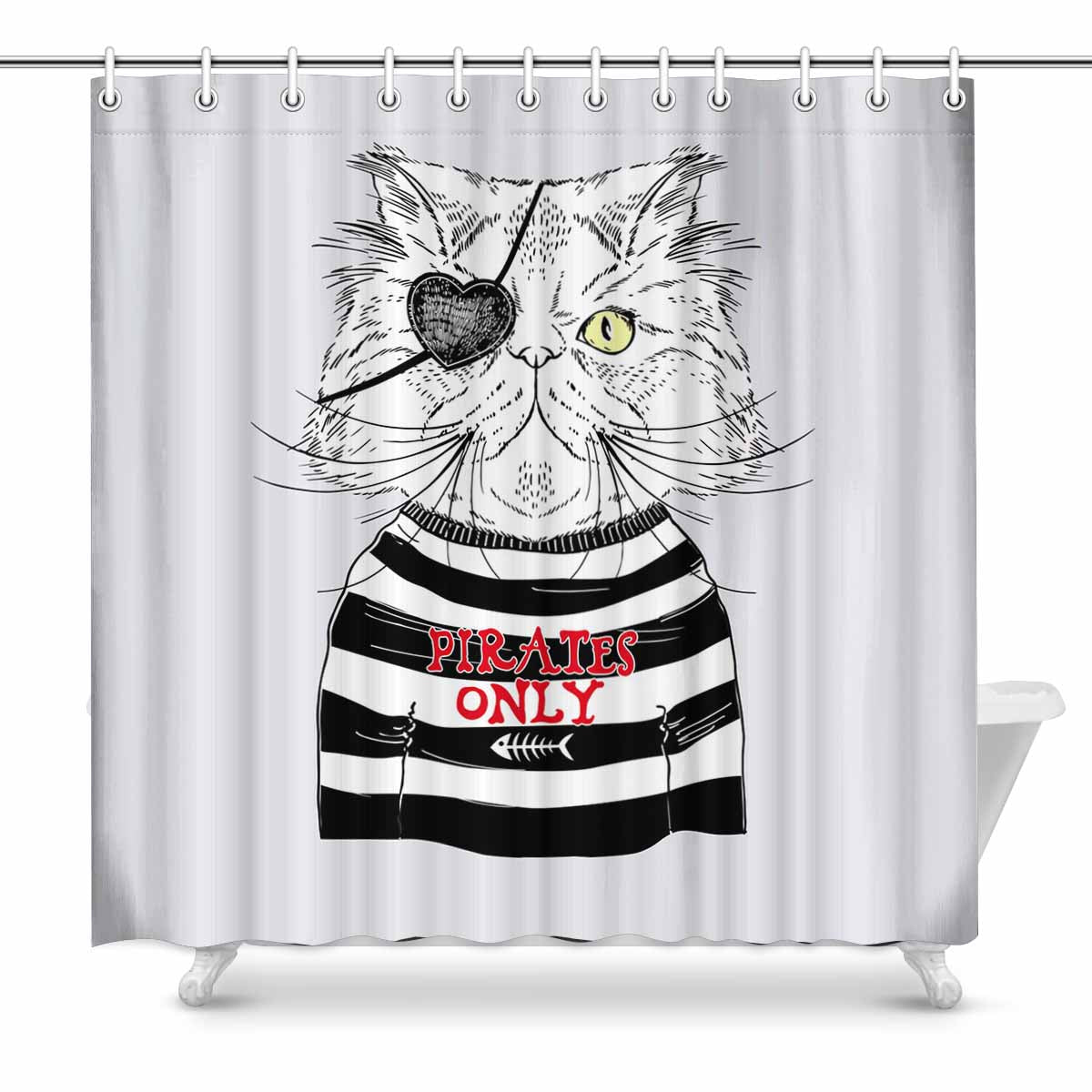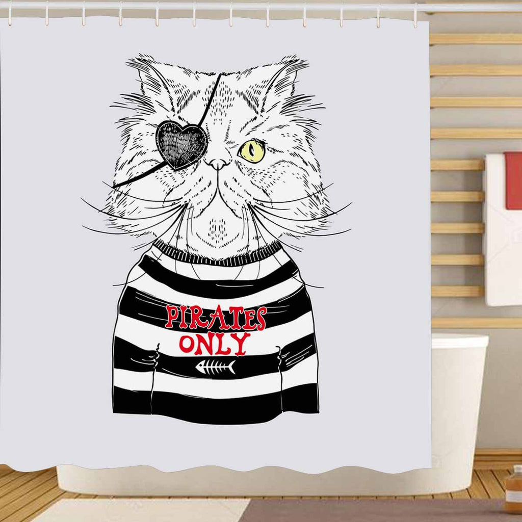 Shower Curtains print with Persian cat pirate