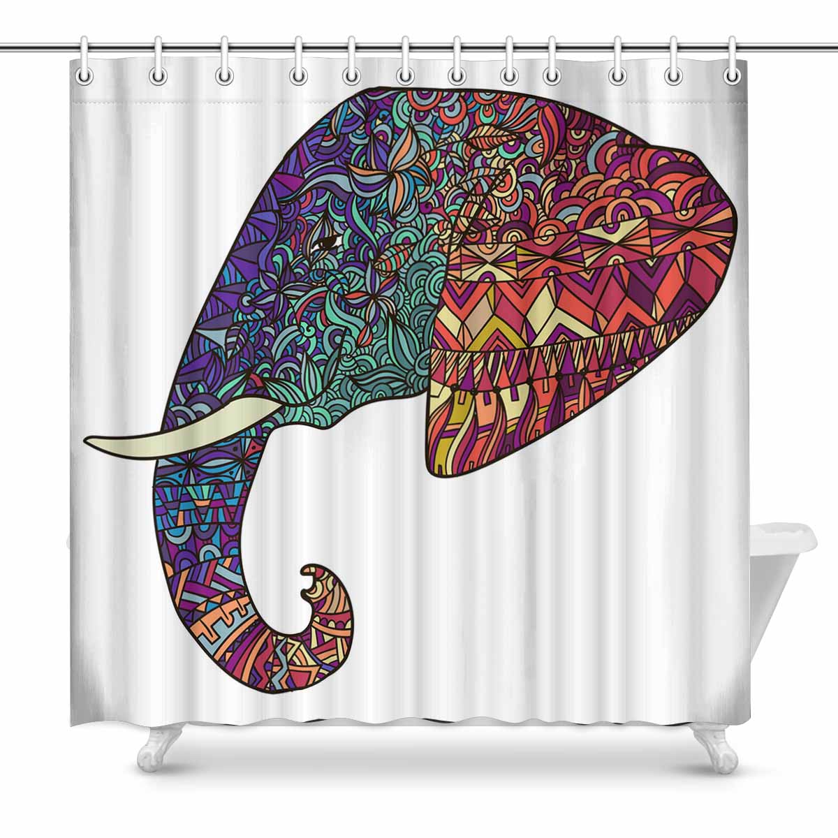 Shower Curtains print with Tribal decorated elephant