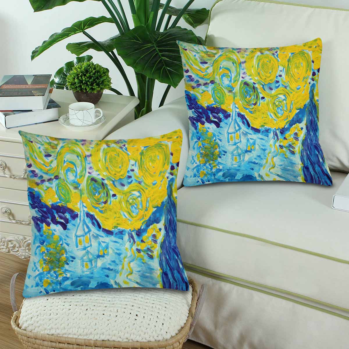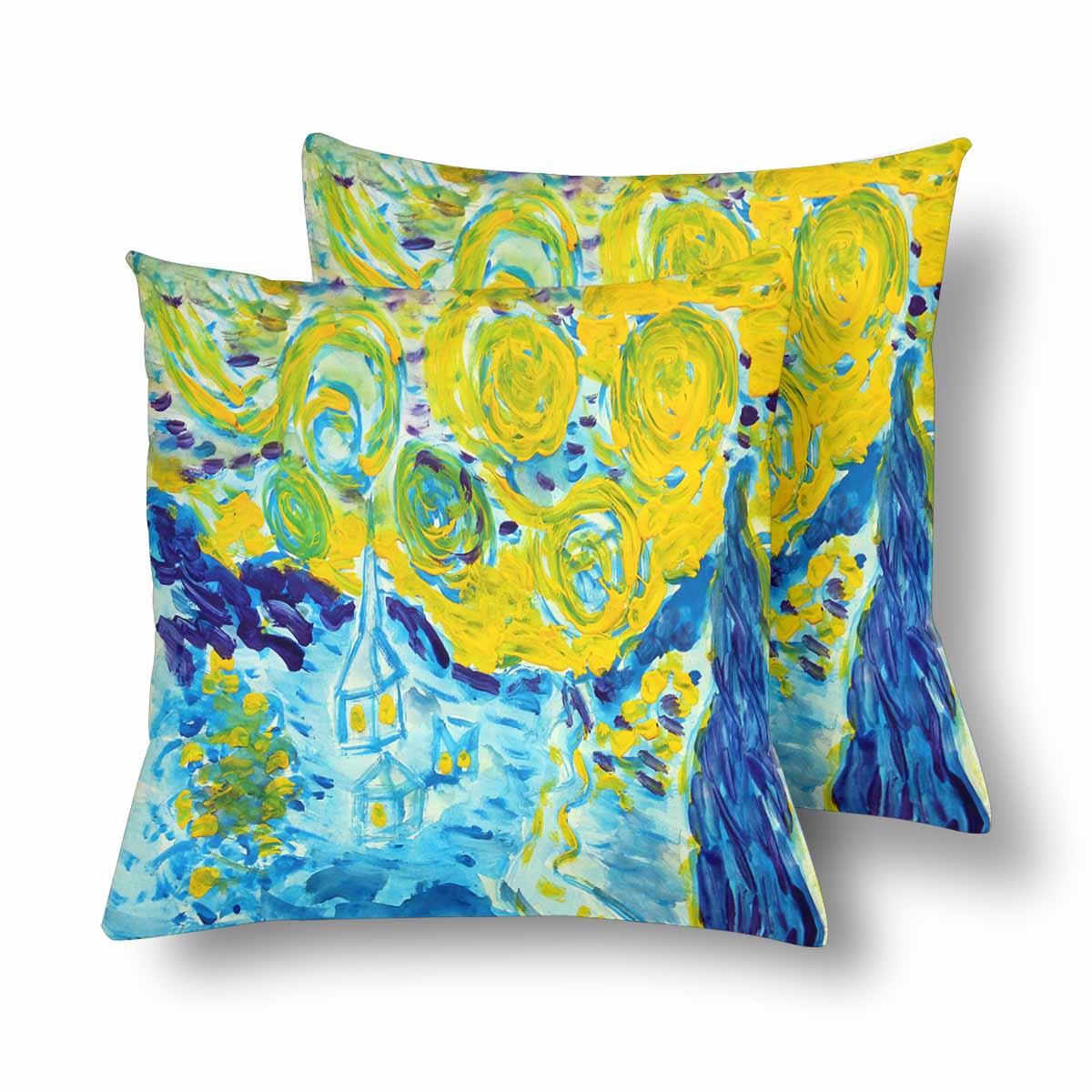 Arts themed Pillow Cases printed with Starry night watercolor painting winter snow