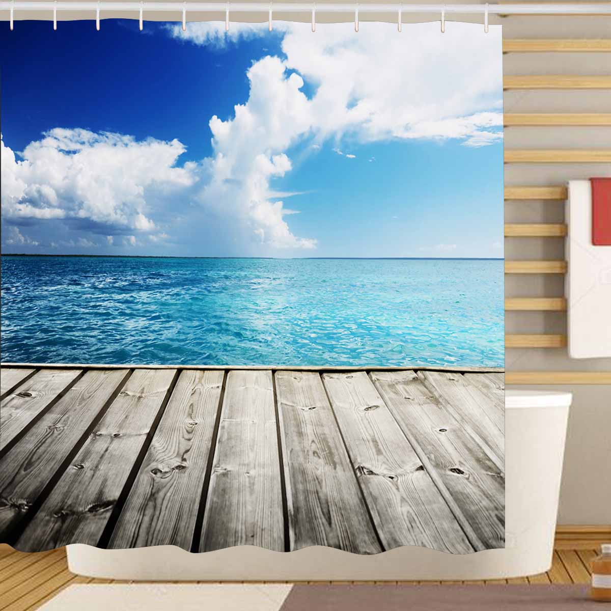 Beach and Ocean themed print on shower curtains for bathroom, create a brilliant atmosphere in your bathroom, include a selection of different stylish and custom-made designs for your bath decoration.