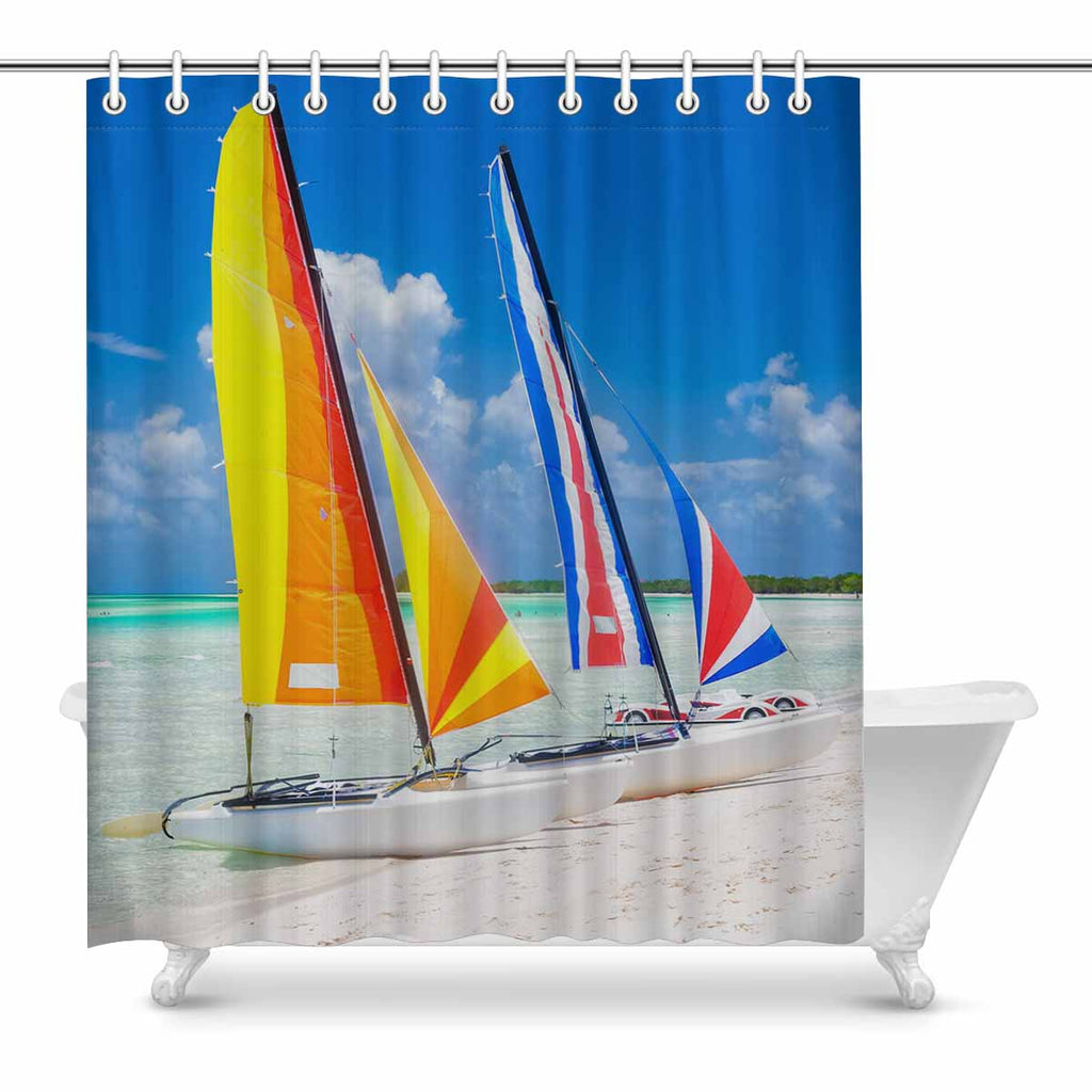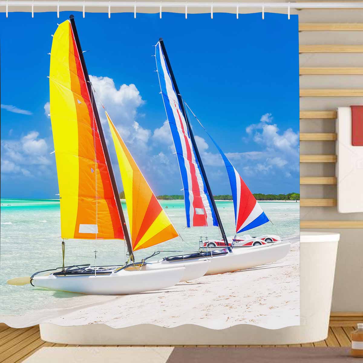 Beach and Ocean themed print on shower curtains for bathroom, create a brilliant atmosphere in your bathroom, include a selection of different stylish and custom-made designs for your bath decoration.