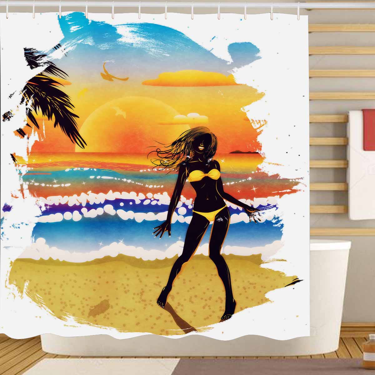 Beach and Ocean themed print on shower curtains for bathroom, create a brilliant atmosphere in your bathroom, include a selection of different stylish and custom-made designs for your bath decoration.