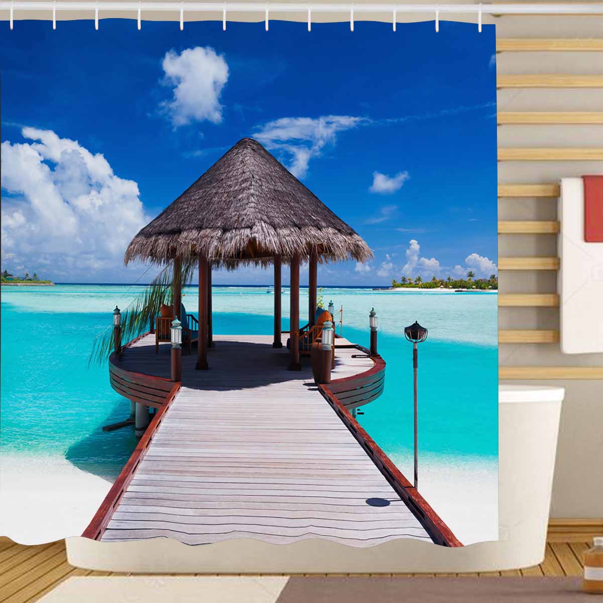 Beach and Ocean themed print on shower curtains for bathroom, create a brilliant atmosphere in your bathroom, include a selection of different stylish and custom-made designs for your bath decoration.