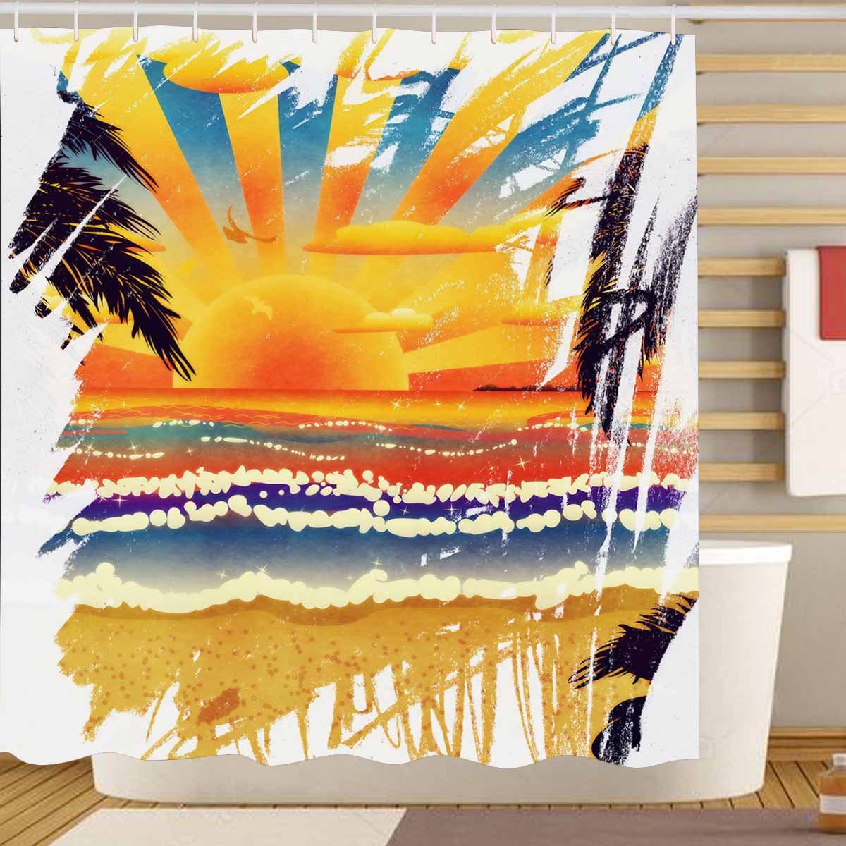 Beach and Ocean themed print on shower curtains for bathroom, create a brilliant atmosphere in your bathroom, include a selection of different stylish and custom-made designs for your bath decoration.