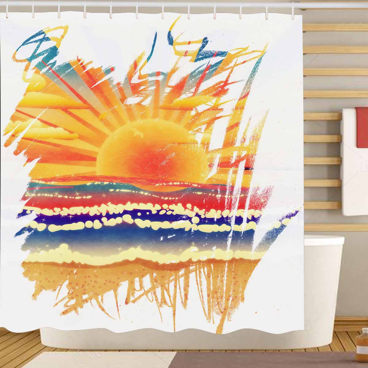 Beach and Ocean themed print on shower curtains for bathroom, create a brilliant atmosphere in your bathroom, include a selection of different stylish and custom-made designs for your bath decoration.