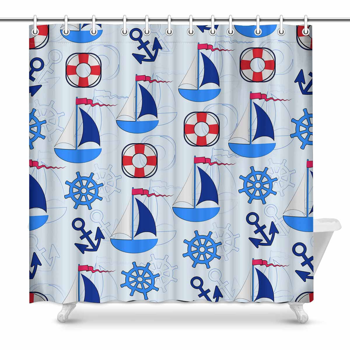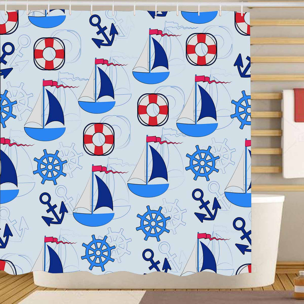 Themed for Kids Shower Curtains print with sailboat and anchor