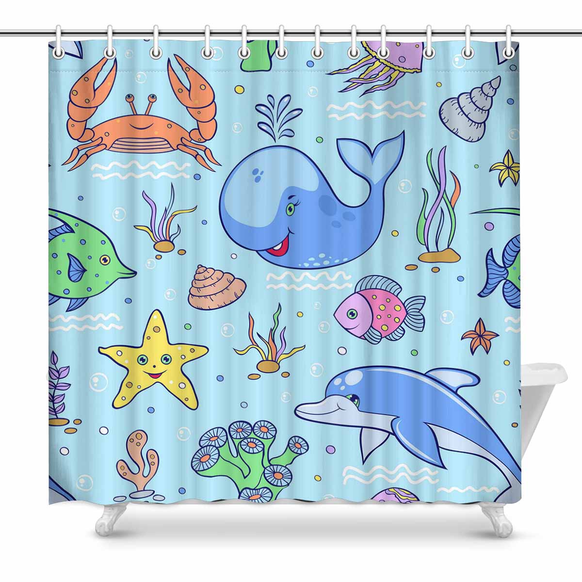 Themed for Kids Shower Curtains print with Underwater world fish and dophin