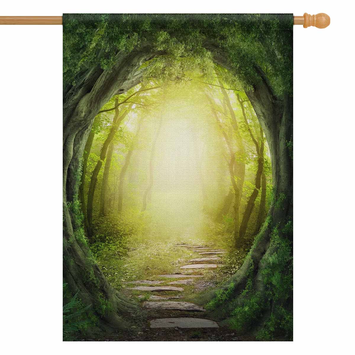 Garden Flags printed Coutry themed with Road in magic dark forest